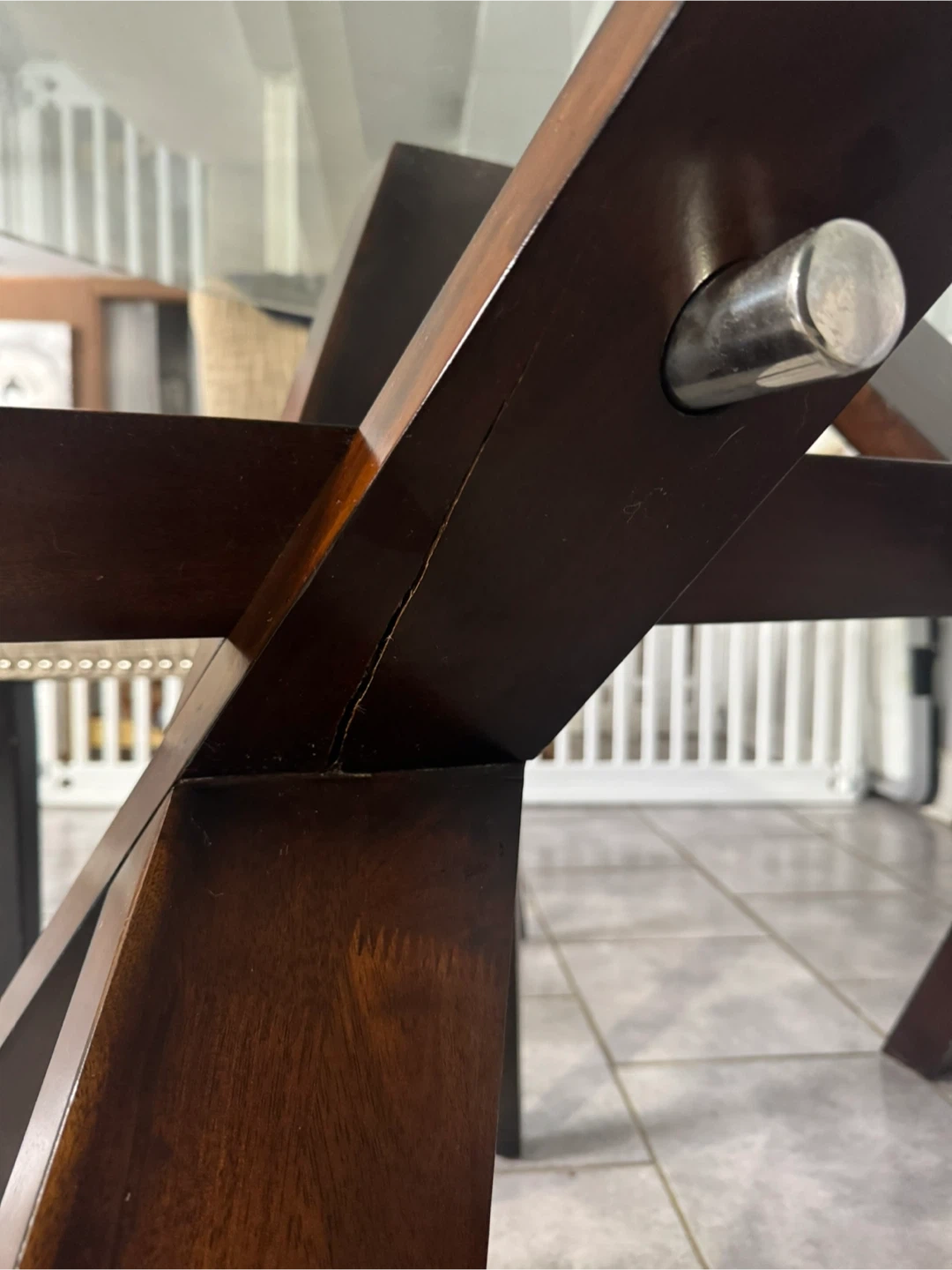 Small crack on one of the wooden legs, please see picture