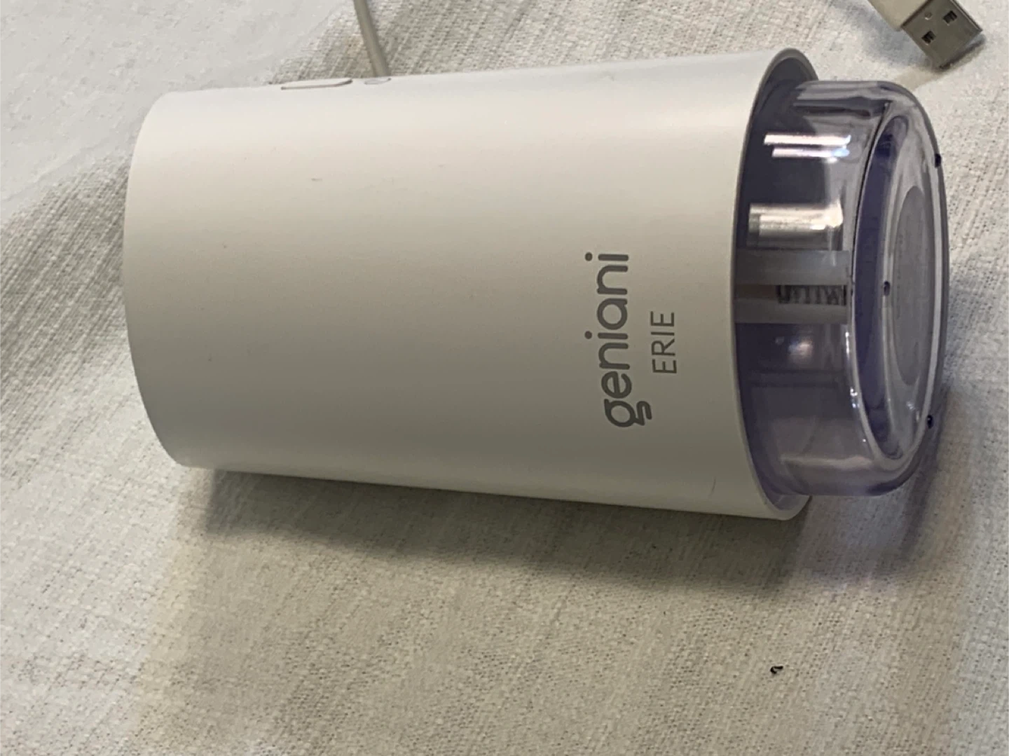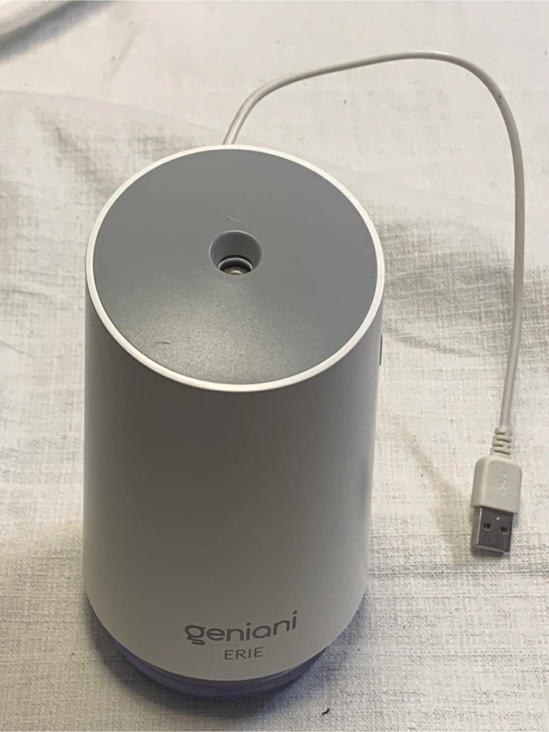 Selling a Geniani Erie humidifier, 250ml capacity, in white. Model number is KW-JSQ10. It comes with a USB cable for power. Designed in the USA and made in China.