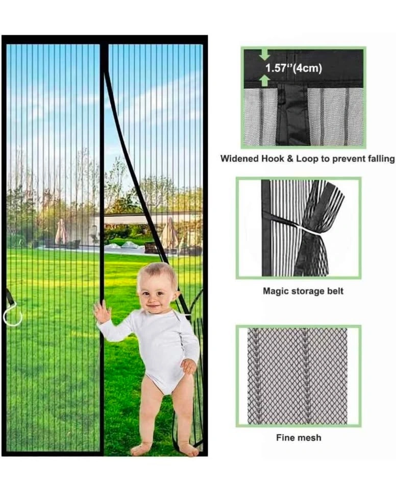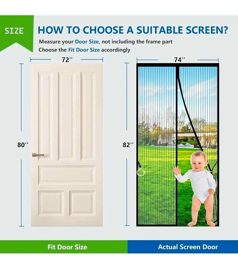 Black Magnetic Screen Door - Fit Door Size 72x80 Inch, Screen Size 74x82 Inch - Heavy Duty Mesh Full Frame With Magic Tape