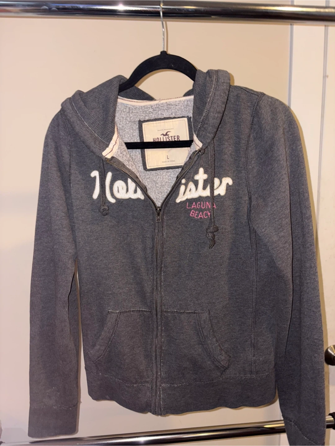 Hollister Gray Full Zip Hoodie - Size L