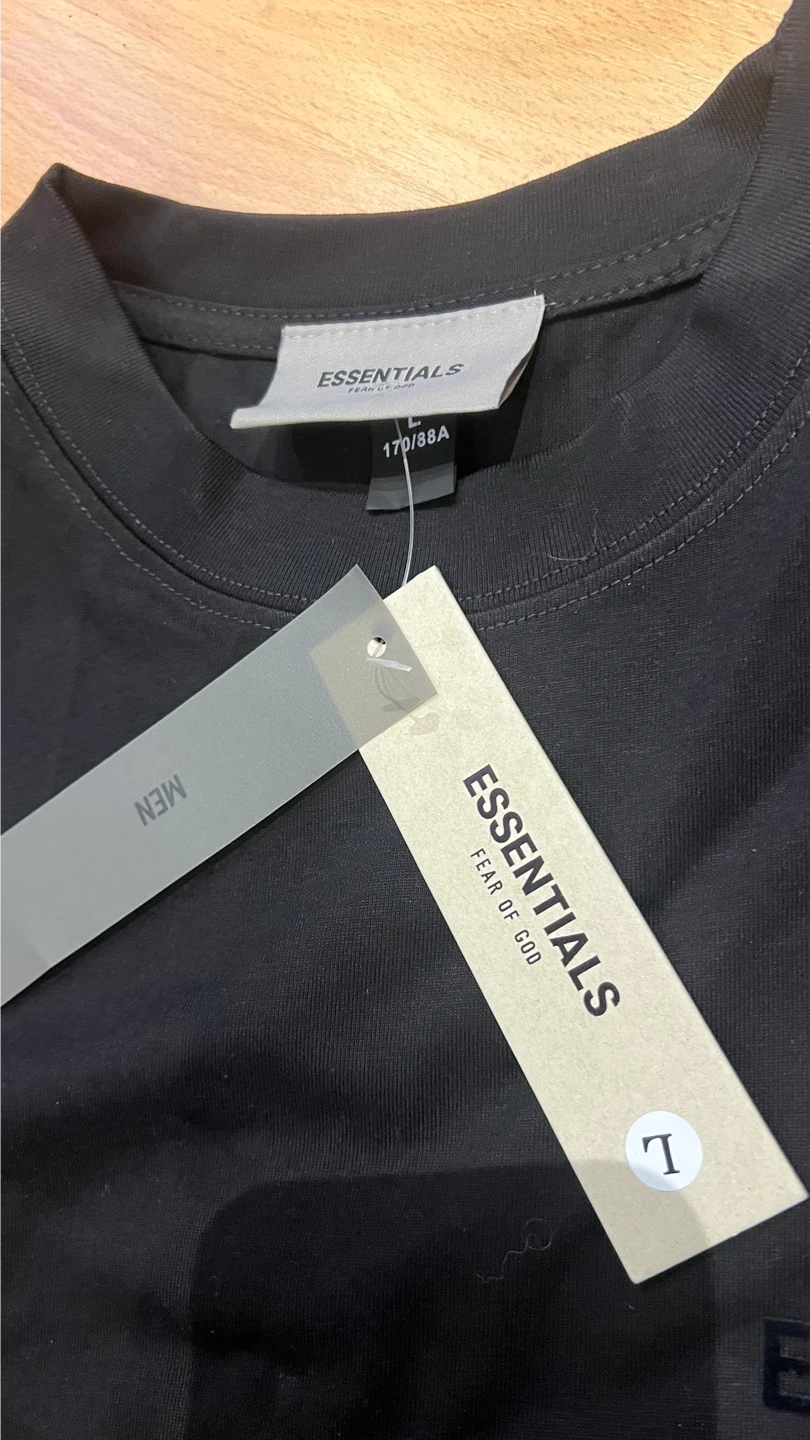Selling a brand new ESSENTIALS Fear of God t-shirt in black, size large but fits M!It's still in the original packaging with tags attached. A great addition to any wardrobe!