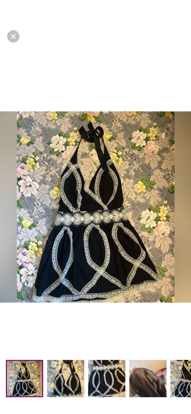 Guess by Marciano brand. Adjustable halter tie vneck top open back mini dress. Black silk with white lace. Size medium. Brand new condition