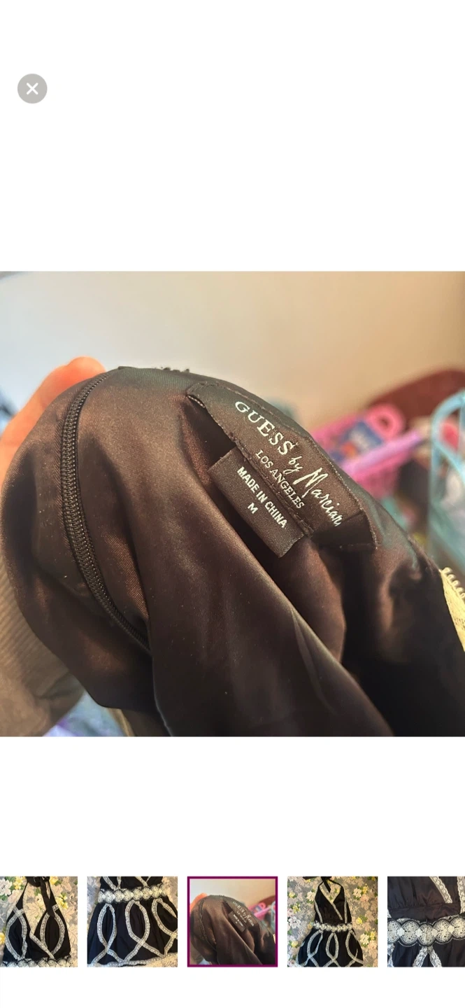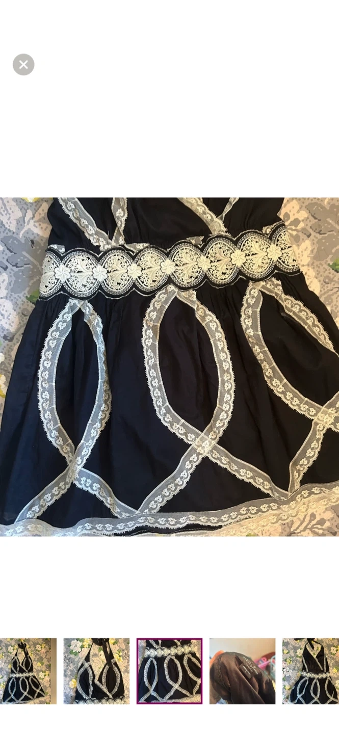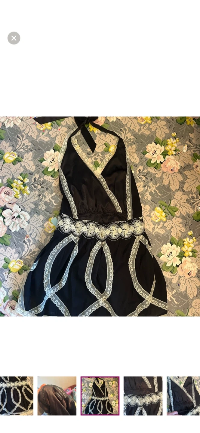 Guess by Marciano brand. Adjustable halter tie vneck top open back mini dress. Black silk with white lace. Size medium. Brand new condition