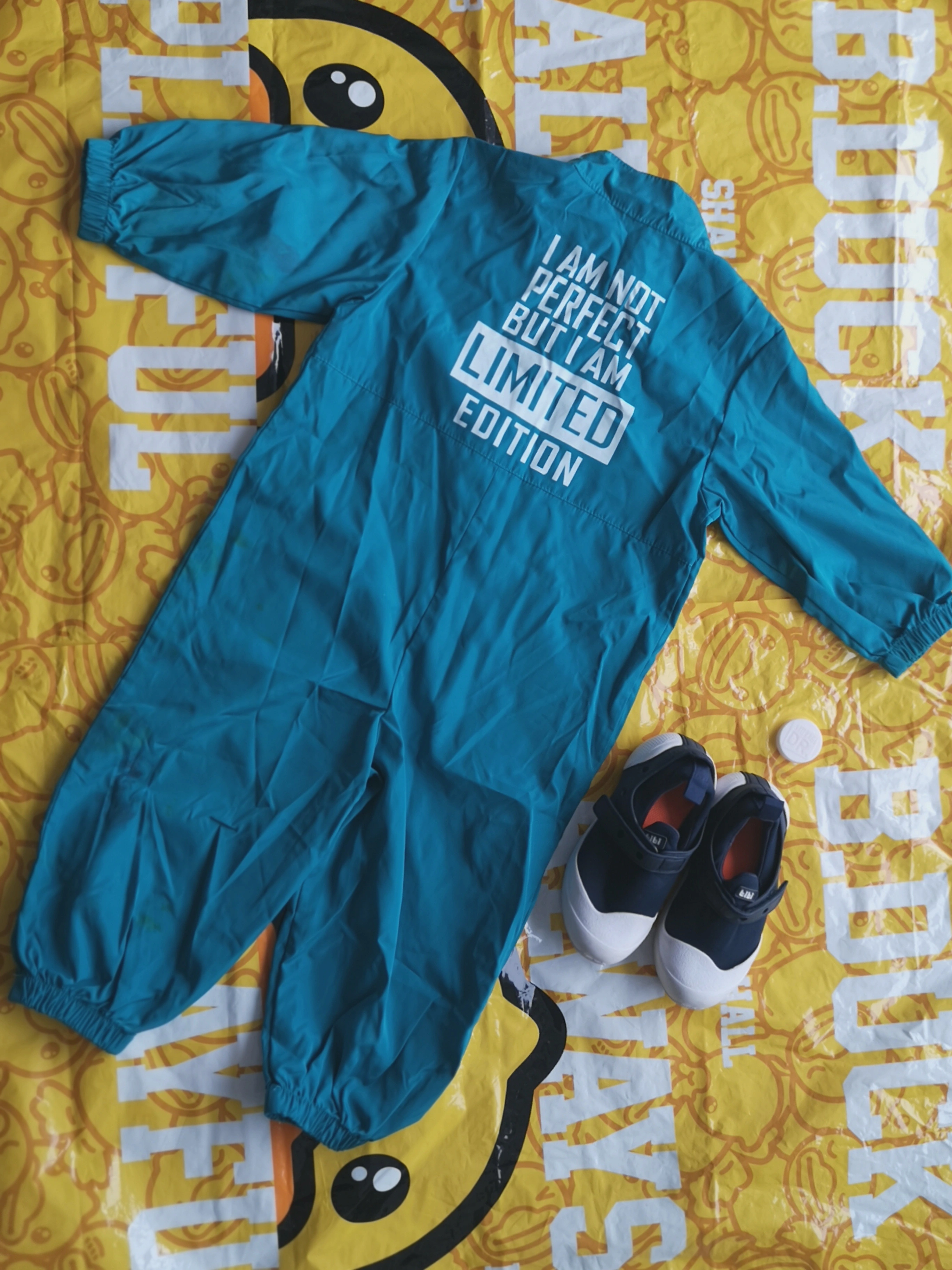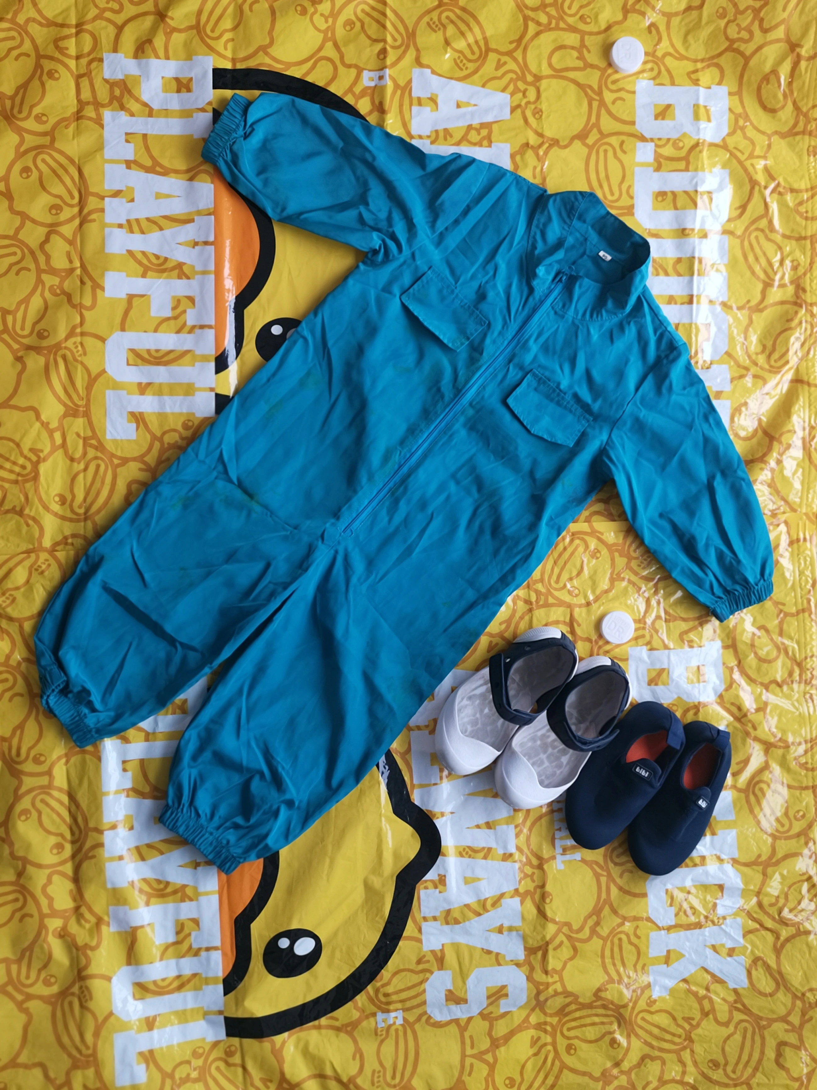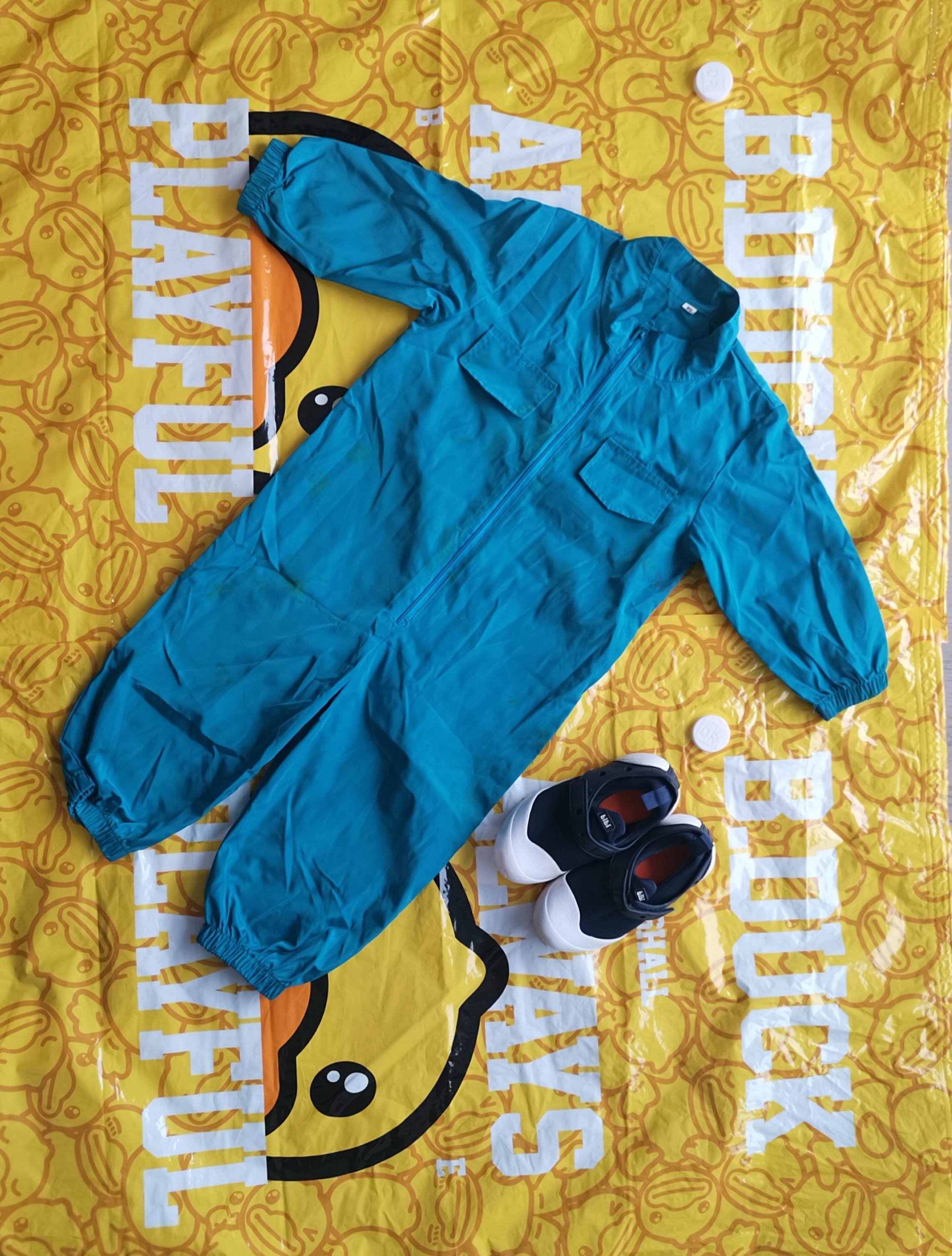 Cool Painting Jumpsuit let your little one fully enjoy the fun of creation without mess. Some color stains remained which are not obvious. Free a pair 2Way Navy Bibi indoor or outdoor shoes. Less thing to bring to daycare, preschool, restaurants etc.