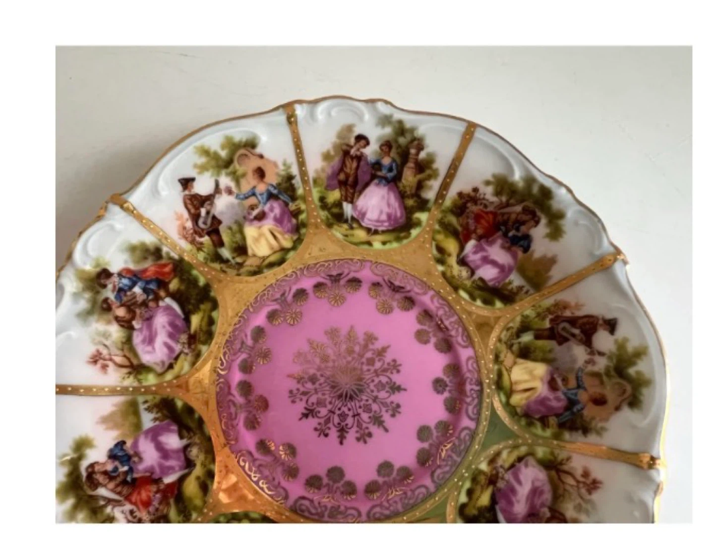 Selling a beautiful pink tea cup and saucer set from JK Design Poland. The set features gold detailing and a delicate design. Perfect for tea time or as a decorative piece! 2 sets & milk pitcher as well