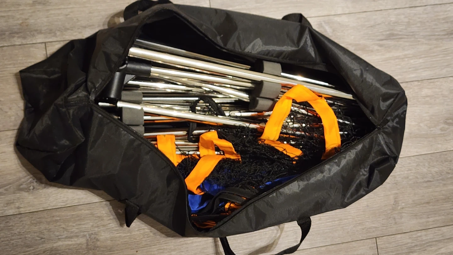Get ready for some fun with this portable badminton net set! It's easy to set up and take down, making it perfect for backyard games, picnics, or trips to the park. The net measures 4.1m x 1.5m. Comes with a carrying bag for easy storage and transport.