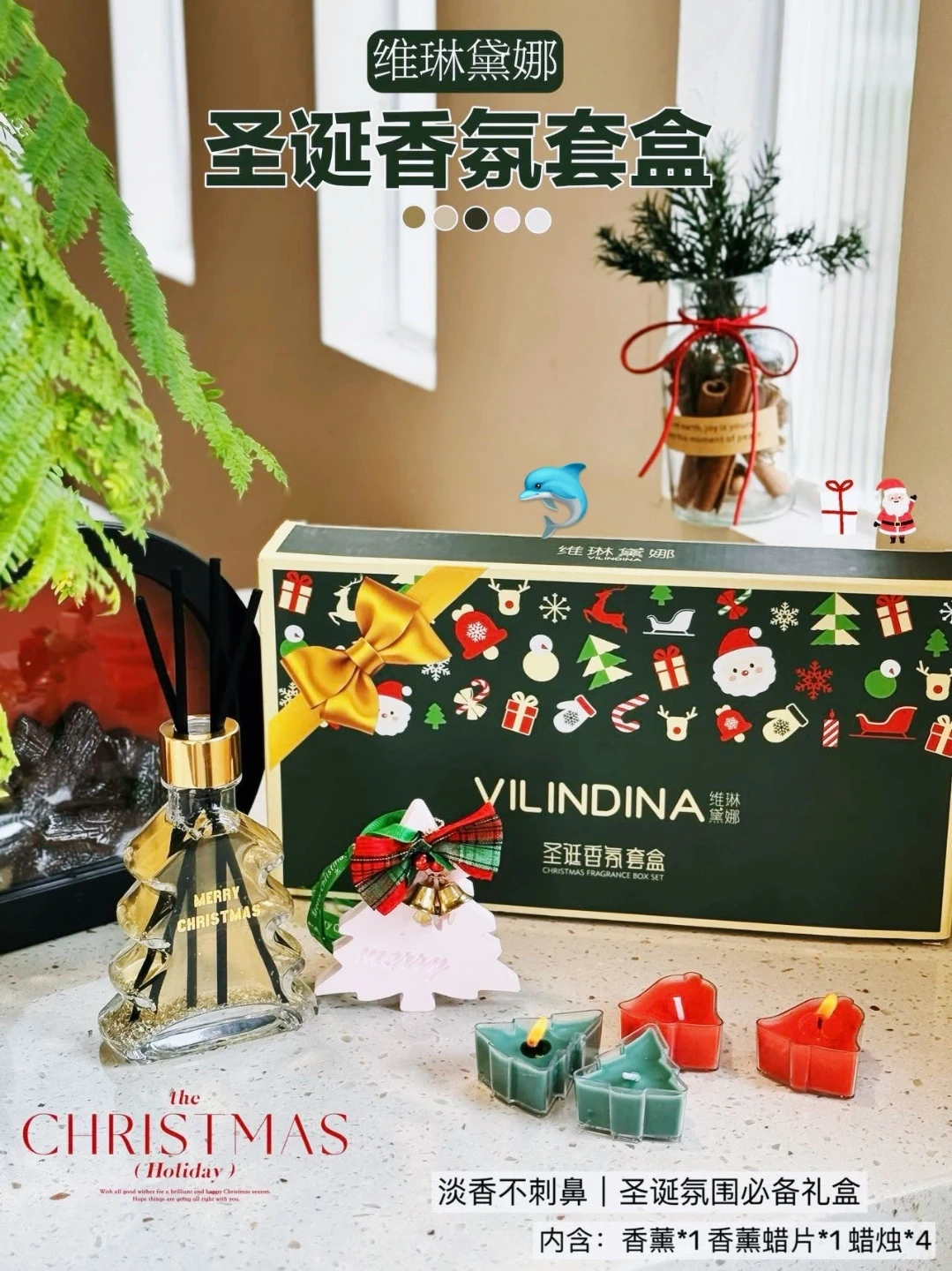 Selling a VILINDINA Christmas Fragrance Box Set! It includes a fragrance and Christmas-themed accessories. The box is included, making it perfect for gifting or adding a festive touch to your home