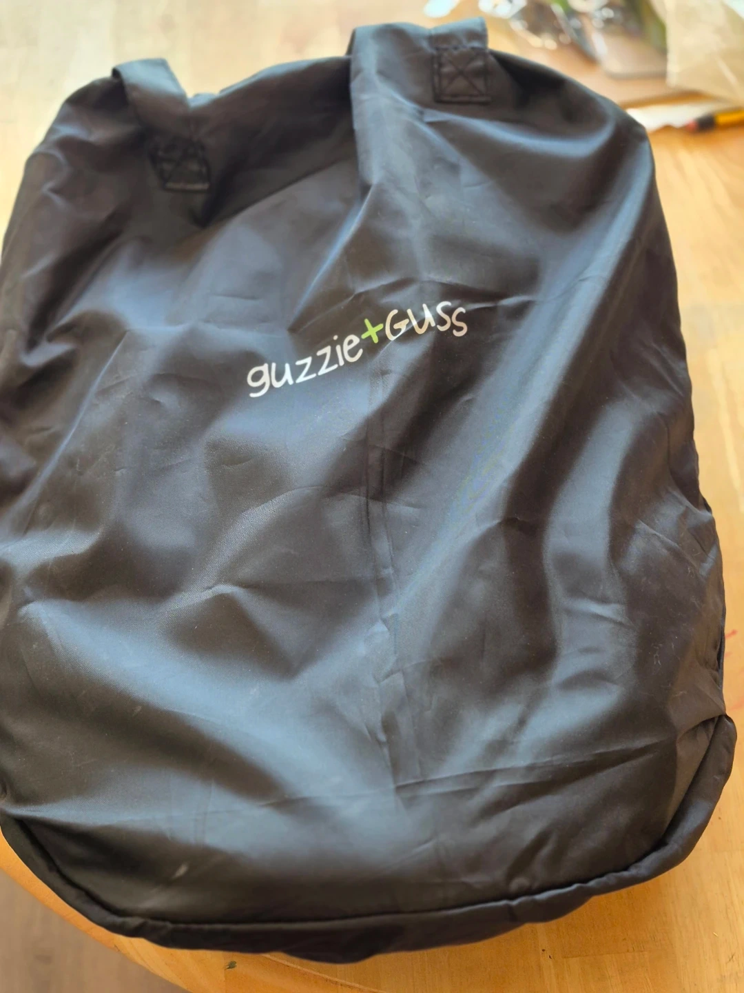 Selling a Guzzie+Guss Perch Hook-on High Chair! This chair is great for saving space and easy to bring when travelling or going out to eat. It easily attaches to most tables, making mealtimes with your little one a breeze. Includes travel bag and silicone placemat. See instructions pictures for appropriate table thickness for use.