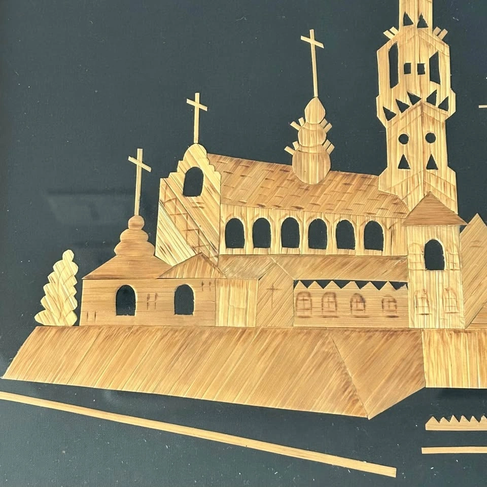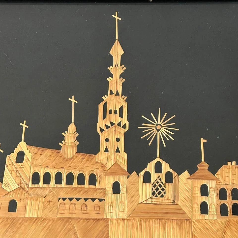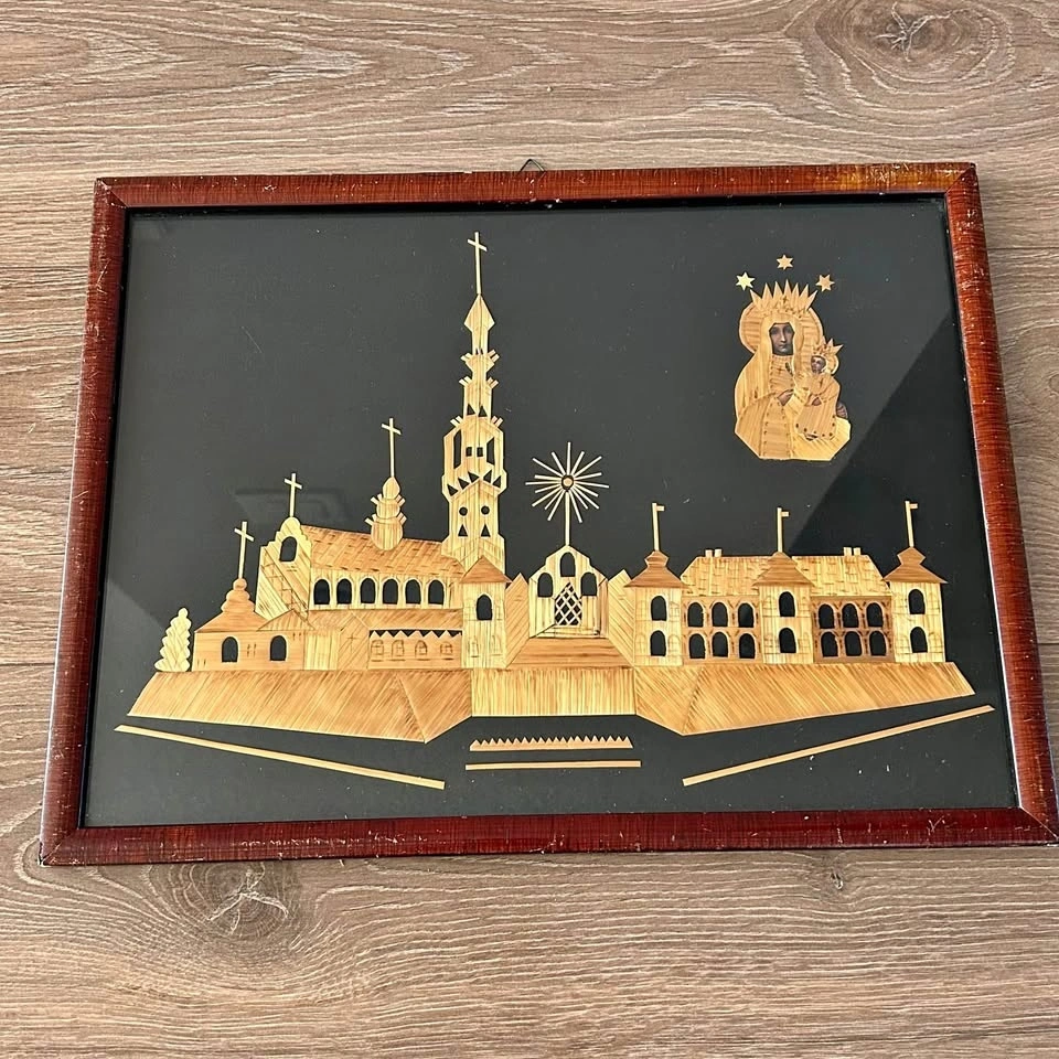 Vintage Straw Art Panel – Jasna Góra Monastery & Black Madonna –