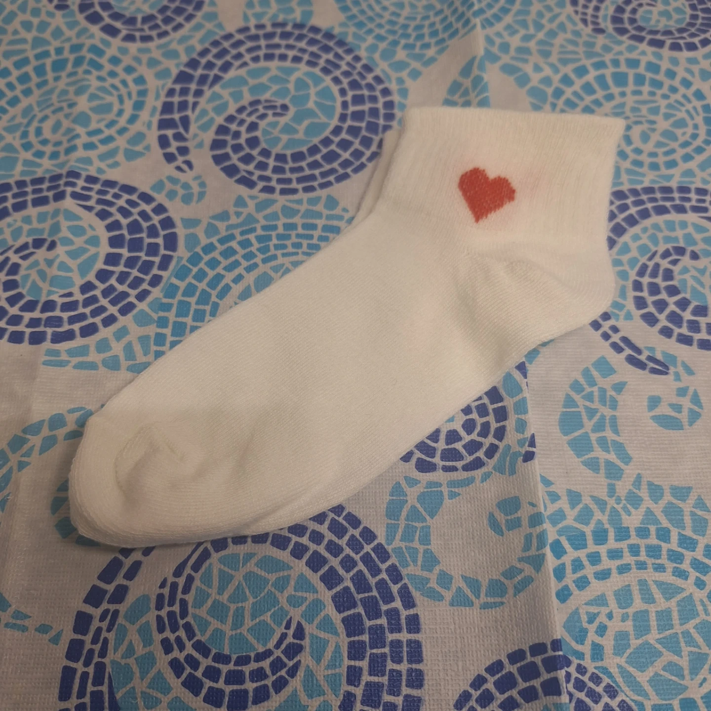 These adorable ankle socks, featuring a charming red heart, are a sweet addition to any outfit. These socks are used and are in good condition.