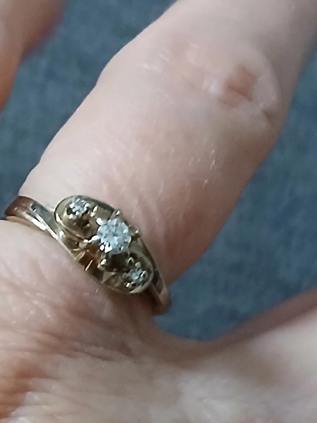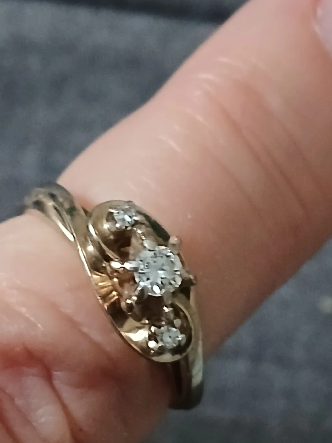 Selling a beautiful ladies white gold diamond ring. The appraisal certificate from G & G Jewellery indicates the ring has a T.W.D. of .15 points and is set with 1-1.11 point VS2 clarity, I-J colour round brilliant diamond and 2-0.02 point VS2 clarity, H-I-J colour round single cut diamonds. The ring is 14K white gold mount, 6-claw centre and 4-claw set sides, weighing approximately 3.6 grams. The approximate replacement value is $733.70!