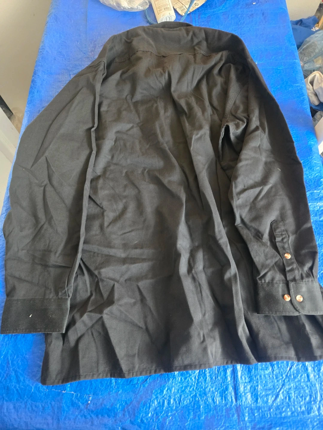 Selling a vintage black long sleeve button down shirt. It's in good condition and ready for a new wardrobe! The shirt features a classic button-down style with long sleeves and a comfortable fit. Perfect for casual or dressy occasions