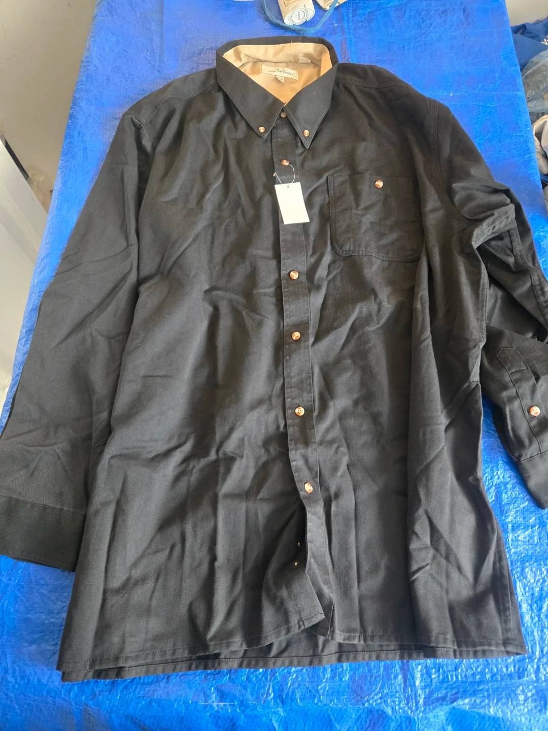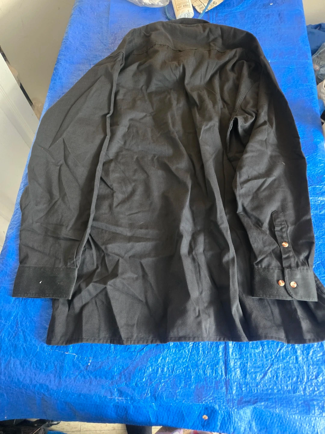 Selling a vintage black long sleeve button down shirt. It's in good condition and ready for a new wardrobe! The shirt features a classic button-down style with long sleeves and a comfortable fit. Perfect for casual or dressy occasions