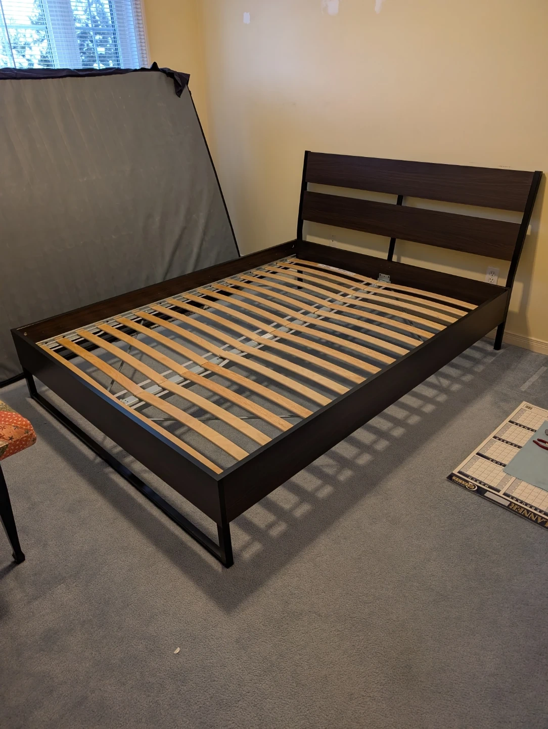 Selling an IKEA Malm bed frame in queen size, complete with Luroy slats and Skorva midbeam. It's in great shape and ready for a new home. Easy to assemble and disassemble. Perfect for upgrading your bedroom!