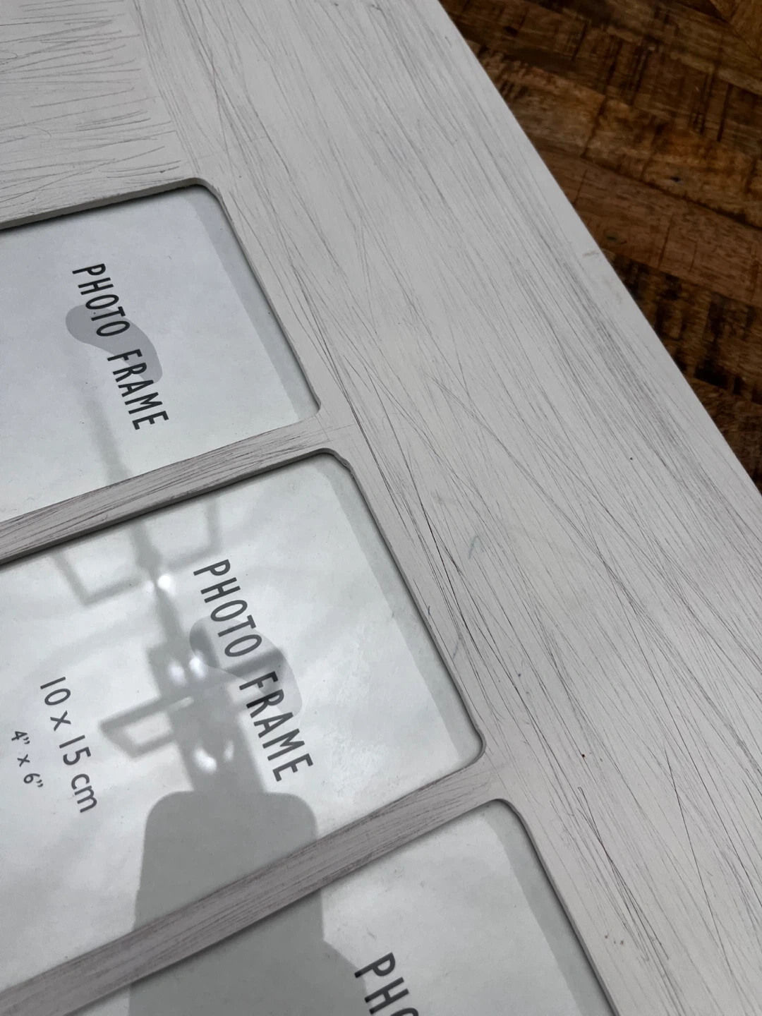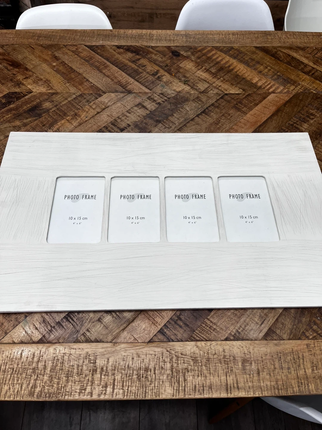 Selling a white wash photo frame that holds four 4" x 6" photos. It's in great condition and ready to display your favourite memories. Measures at 25”x 14.75”. Pick up only. Closest intersection is Jane st and Eglinton Ave.