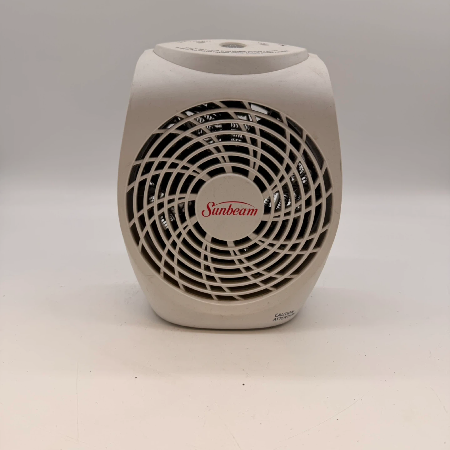 Sunbeam compact portable electric space heater in good working condition. Ideal for bedrooms, offices, dorm rooms, or small spaces. Heats quickly and has adjustable temperature settings for comfort.