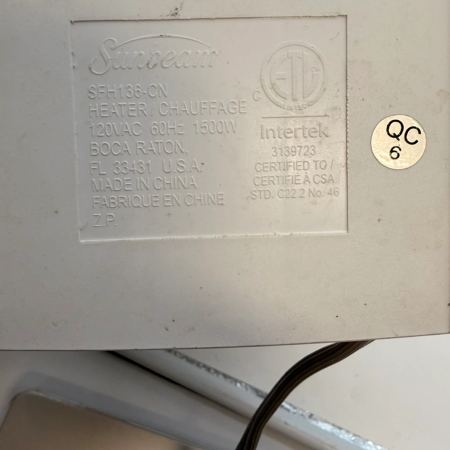 Sunbeam SFH136-CN Heater