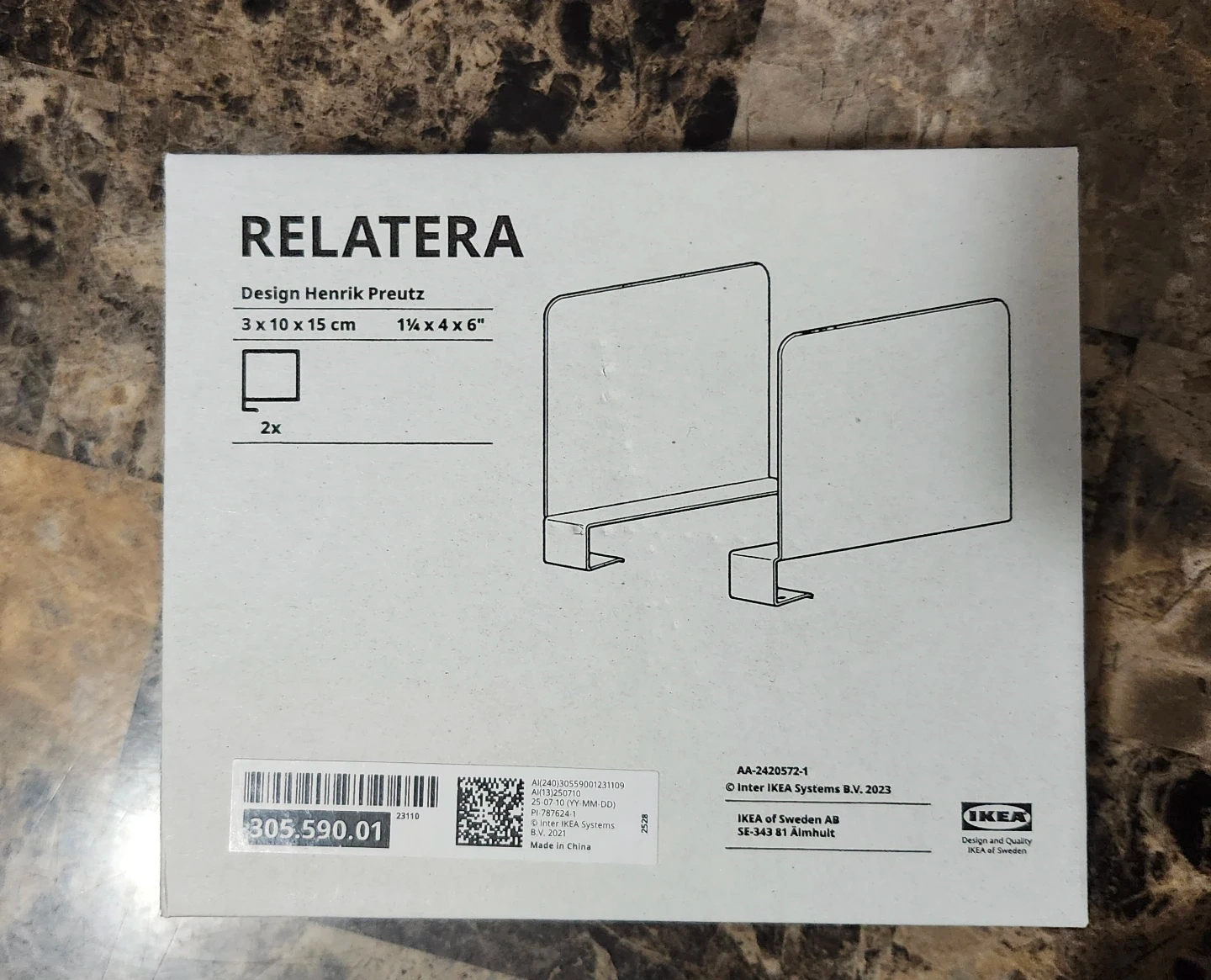 Dimensions are 3 x 10 x 15 cm (1 ¼ x 4 x 6")