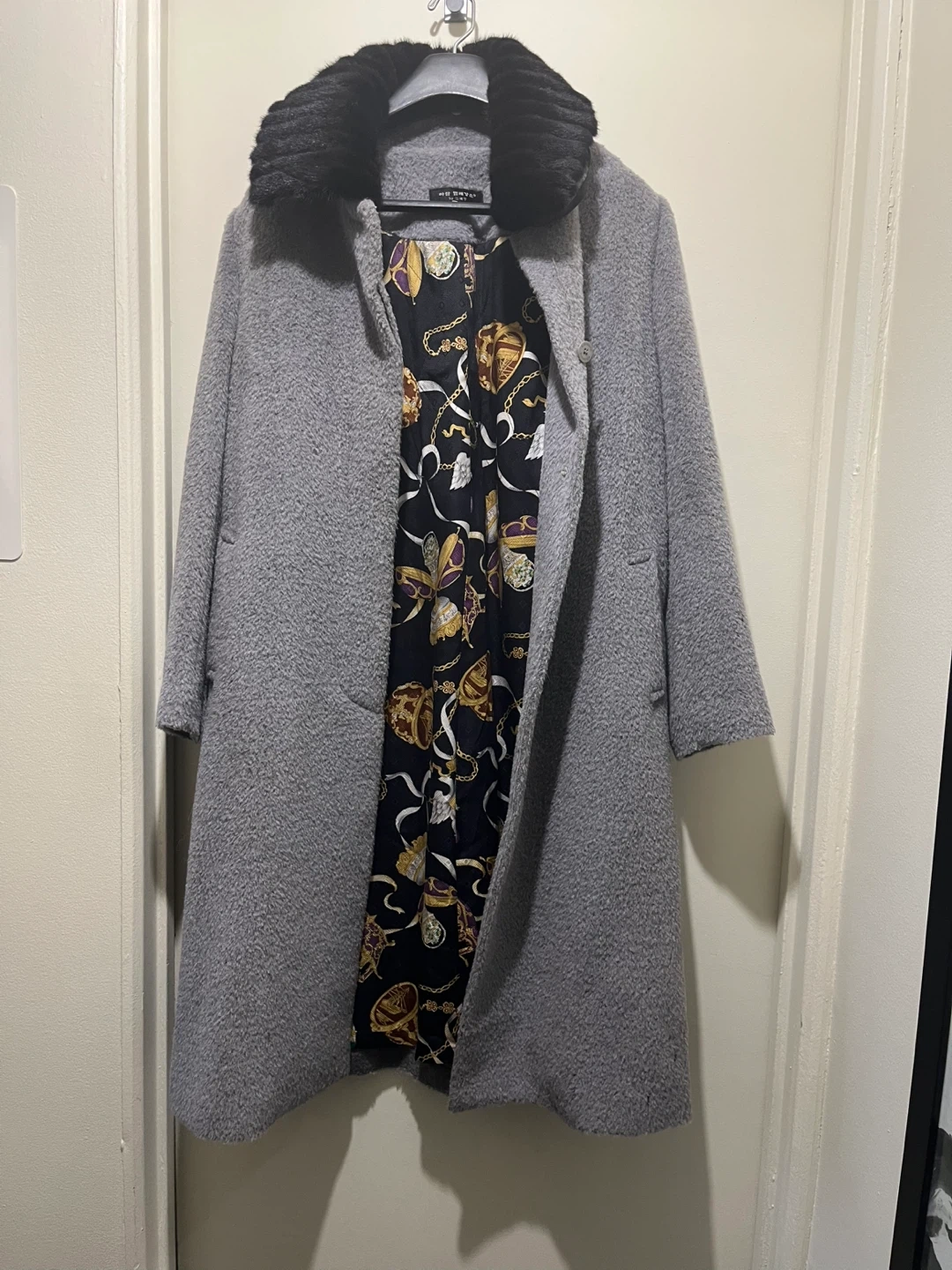 Very warm and classic look. Collar is removable. Approximately 44 inches in length. Underarm seam needs to be stitched. Size Medium. Original price $600. Selling for $60.