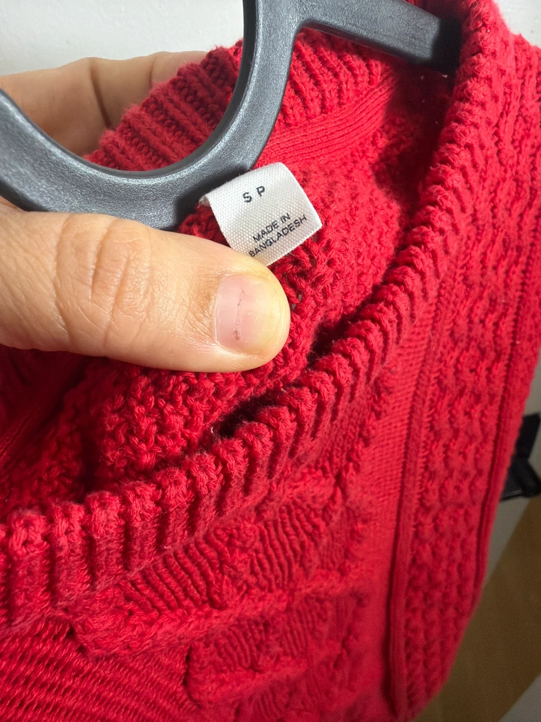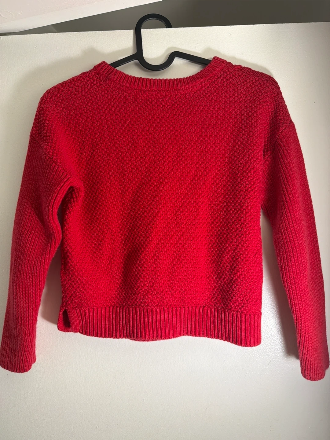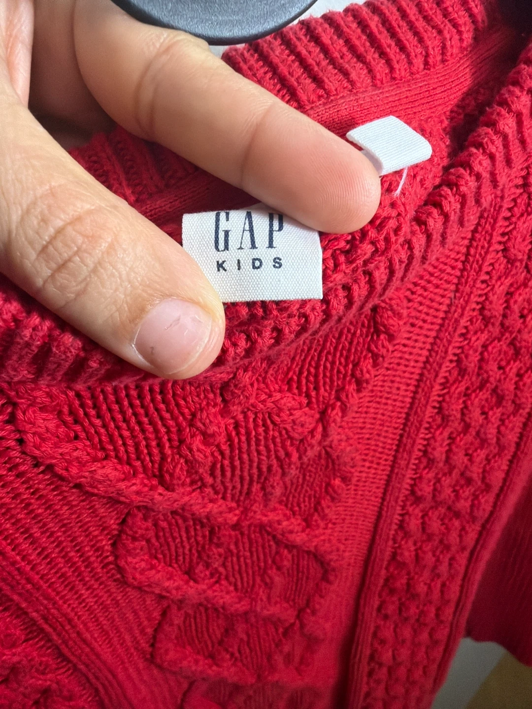 Selling a cute red cable knit sweater from GAP Kids! It's a size small and would be perfect for keeping your little one warm and stylish. The material is soft and cozy, great for everyday wear.
