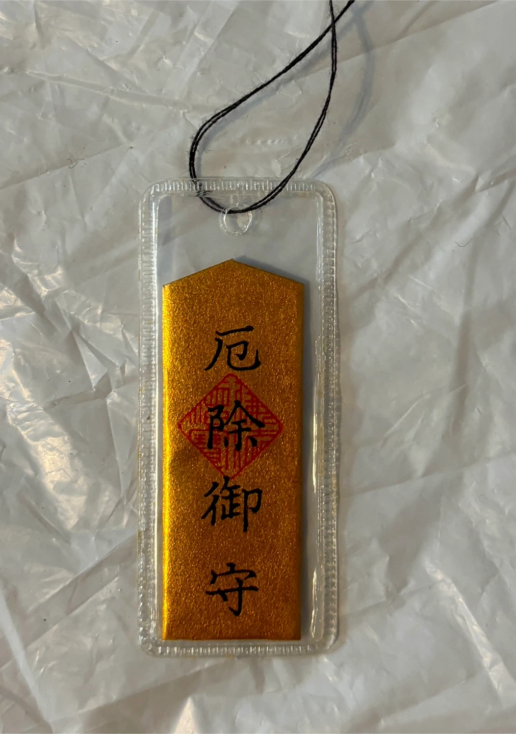 Japanese Omamori amulet charm .. in a gift envelope with card. It's believed to provide various forms of luck or protection. The text indicates it's from the Great Buddha Hall (Daibutsuden) in Kamakura, Japan. They are typically kept in a wallet, tied to a bag, or hung in a car for protection and good fortune. It is also a great Japanese collectible and a gift item!
