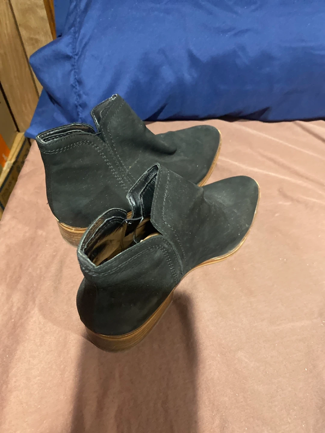 Selling a pair of Lucky Brand ankle boots in black suede. They're in good condition and would be a great addition to your wardrobe