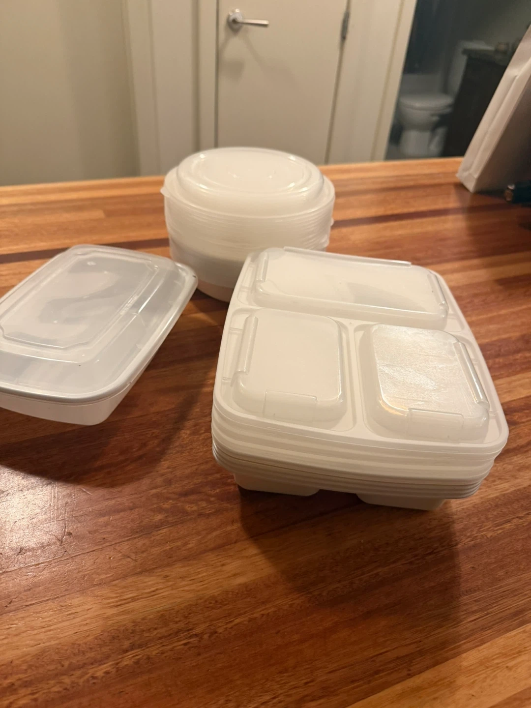 Giving away a set of plastic food storage containers, perfect for meal prepping or storing leftovers! They're in great shape and ready to help keep your fridge organized