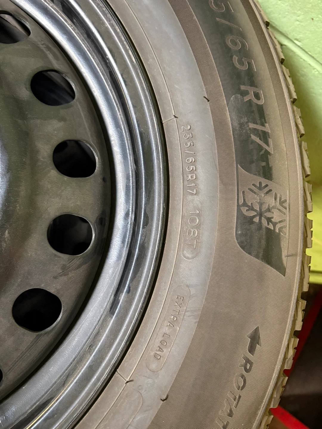 Tire & Wheel Details: Steel Rims, Michelin X-Ice Tires 235/65R17, Tread depth 9/32 in good condition