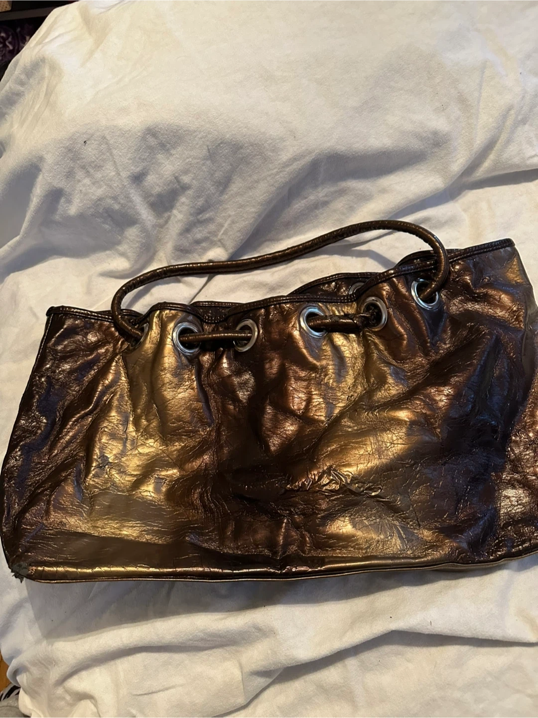 The only damage is some wear on the handles which is unfortunately because of the material the bag is made of. It’s just aging with the rubbing of the handles in the metal rings. Despite that, it’s in good condition and will have years of life left in it as long as you don’t mind the minor bits of wear. It’s really not that noticeable. I just wanted to point out that it’s there!