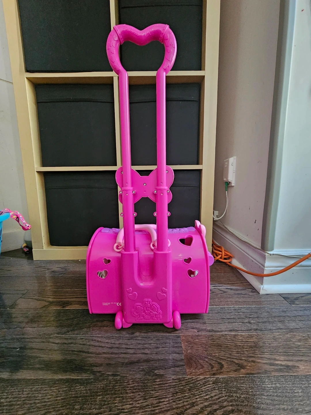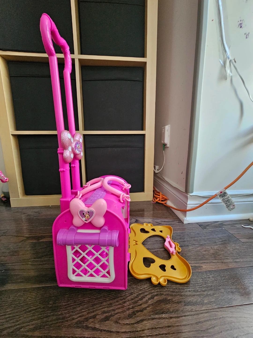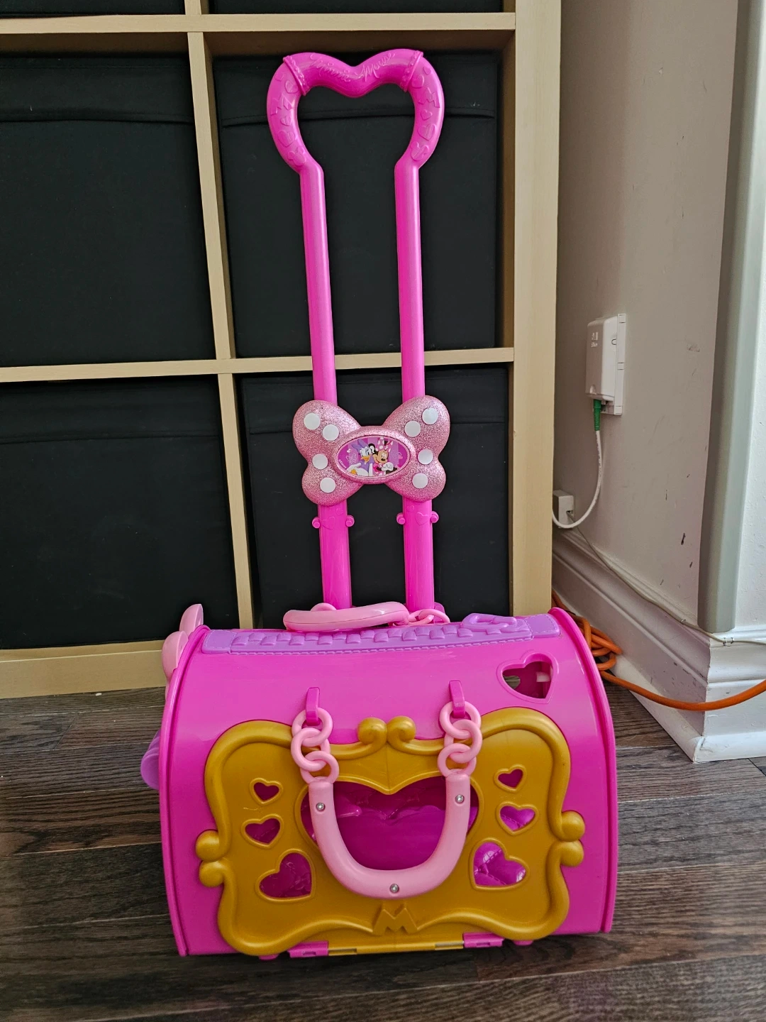 Selling a cute Minnie Mouse rolling suitcase toy! It's pink and purple and has a retractable handle. Perfect for little ones who love Minnie Mouse and pretend play