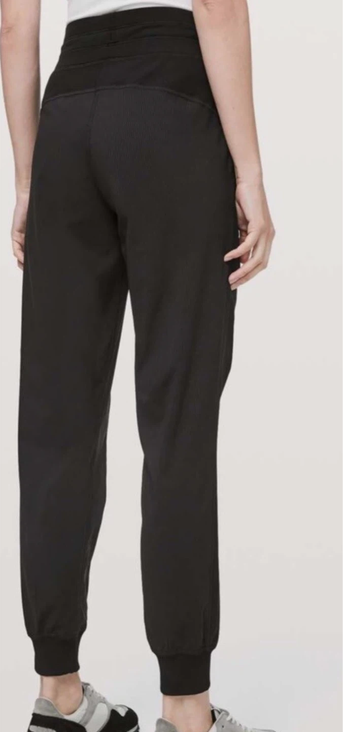 Selling a pair of Lululemon black jogger pants! They're in great shape and super comfy for lounging or working out. The material is soft and flexible, perfect for everyday wear. The design is sleek and modern, making them a stylish addition to any wardrobe, only cash, moving sale