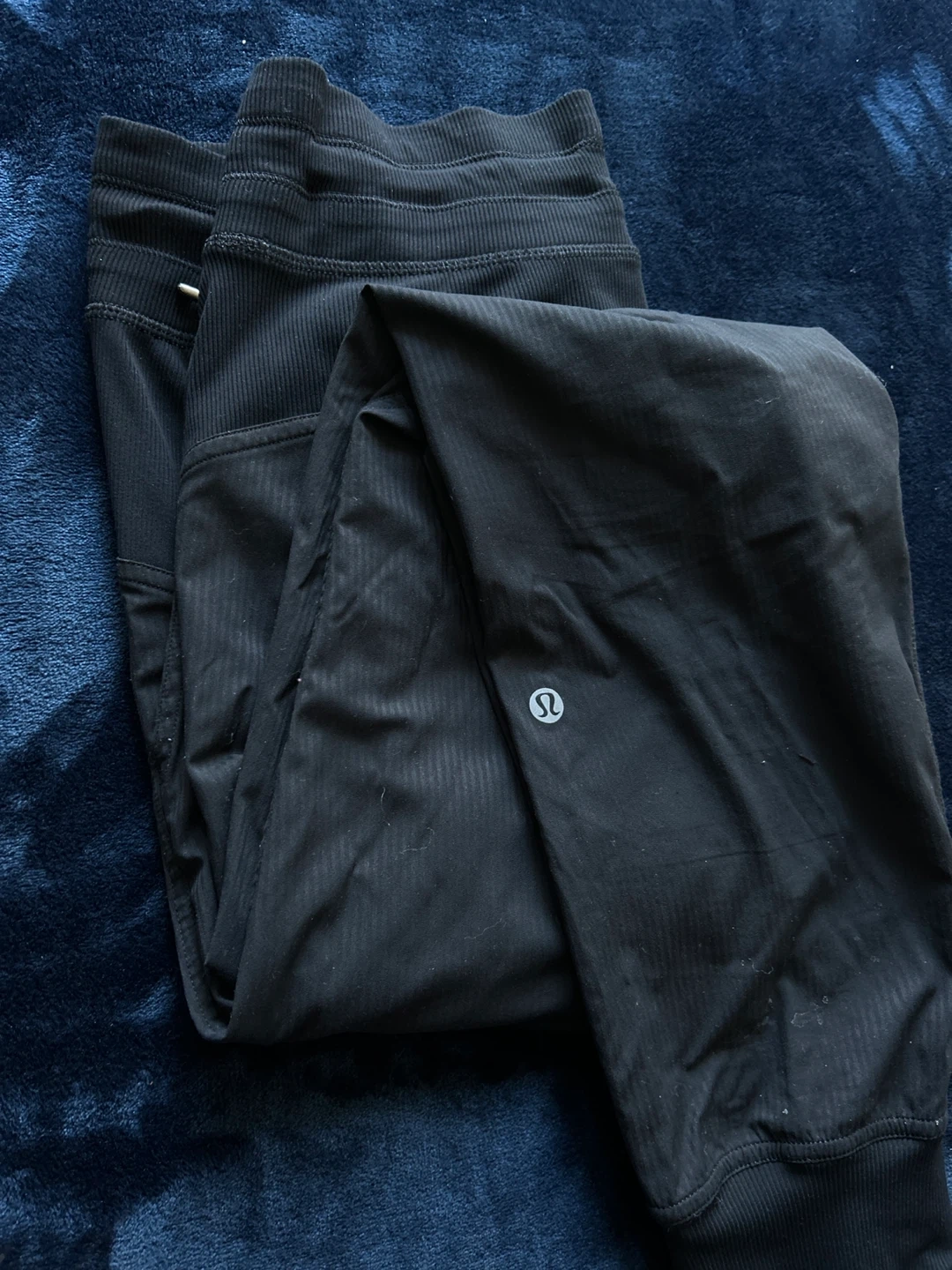 Selling a pair of Lululemon black jogger pants! They're in great shape and super comfy for lounging or working out. The material is soft and flexible, perfect for everyday wear. The design is sleek and modern, making them a stylish addition to any wardrobe, only cash, moving sale