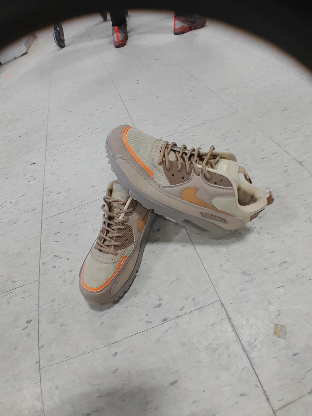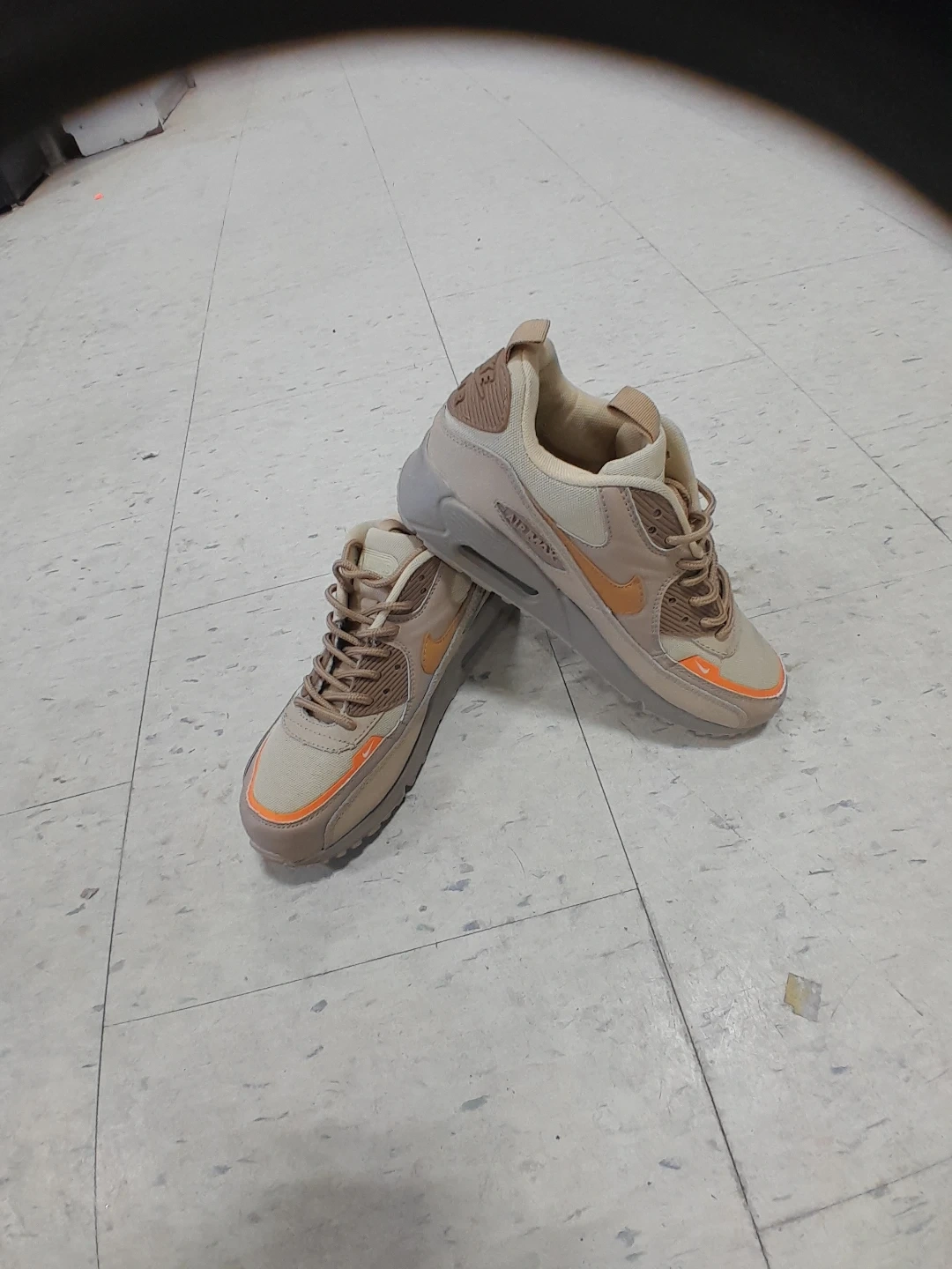 Nike Air Max 90s in a stylish beige and orange colourway. They're in great condition and ready for a new owner! For boys/Teens size 6.5