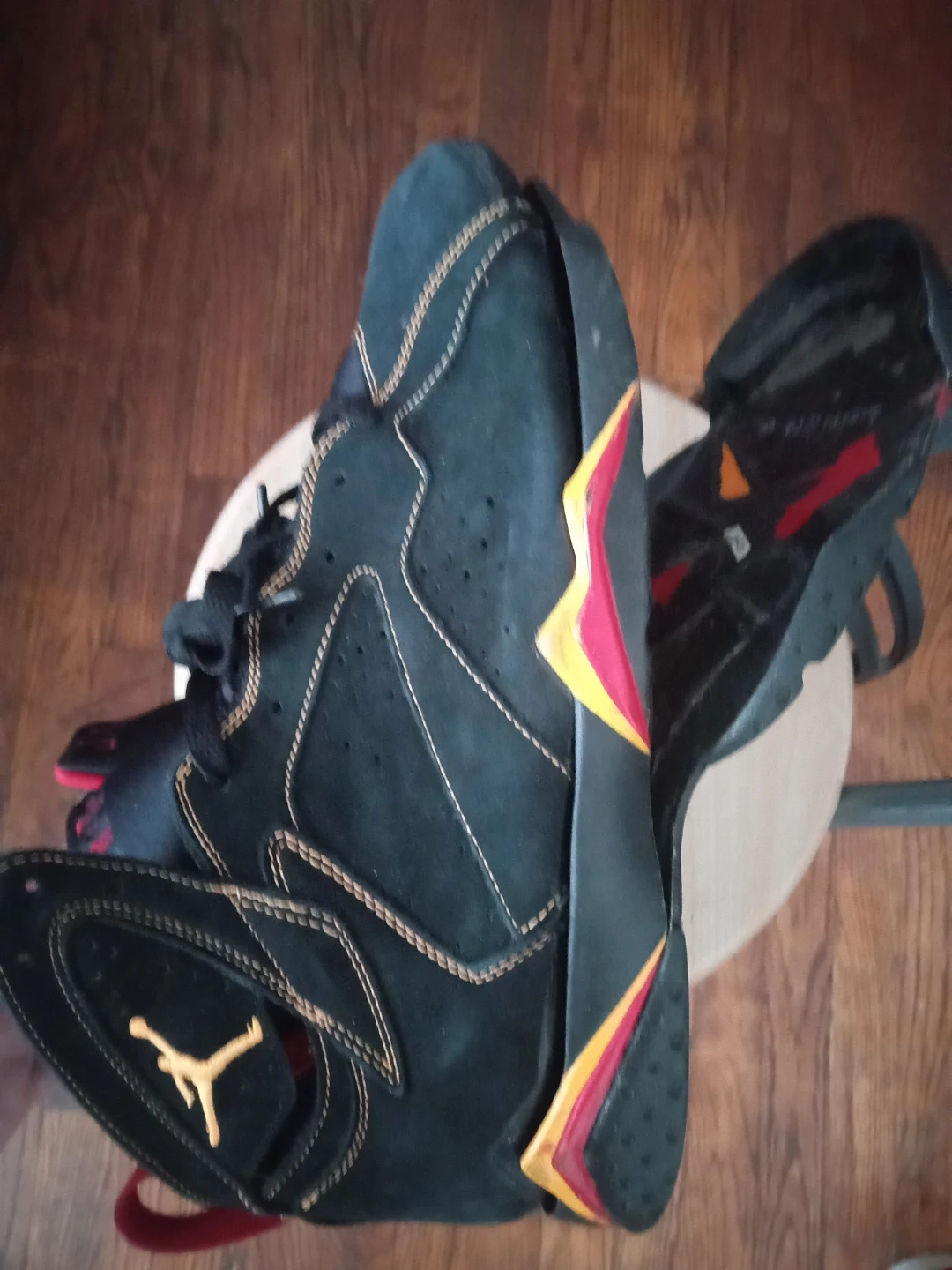 Selling a pair of Collectible Air Jordan 7 citrus Retro sneakers in black and red. They're in good condition with some signs of wear, as shown in the pictures. These are a classic and stylish addition to any sneaker collection!