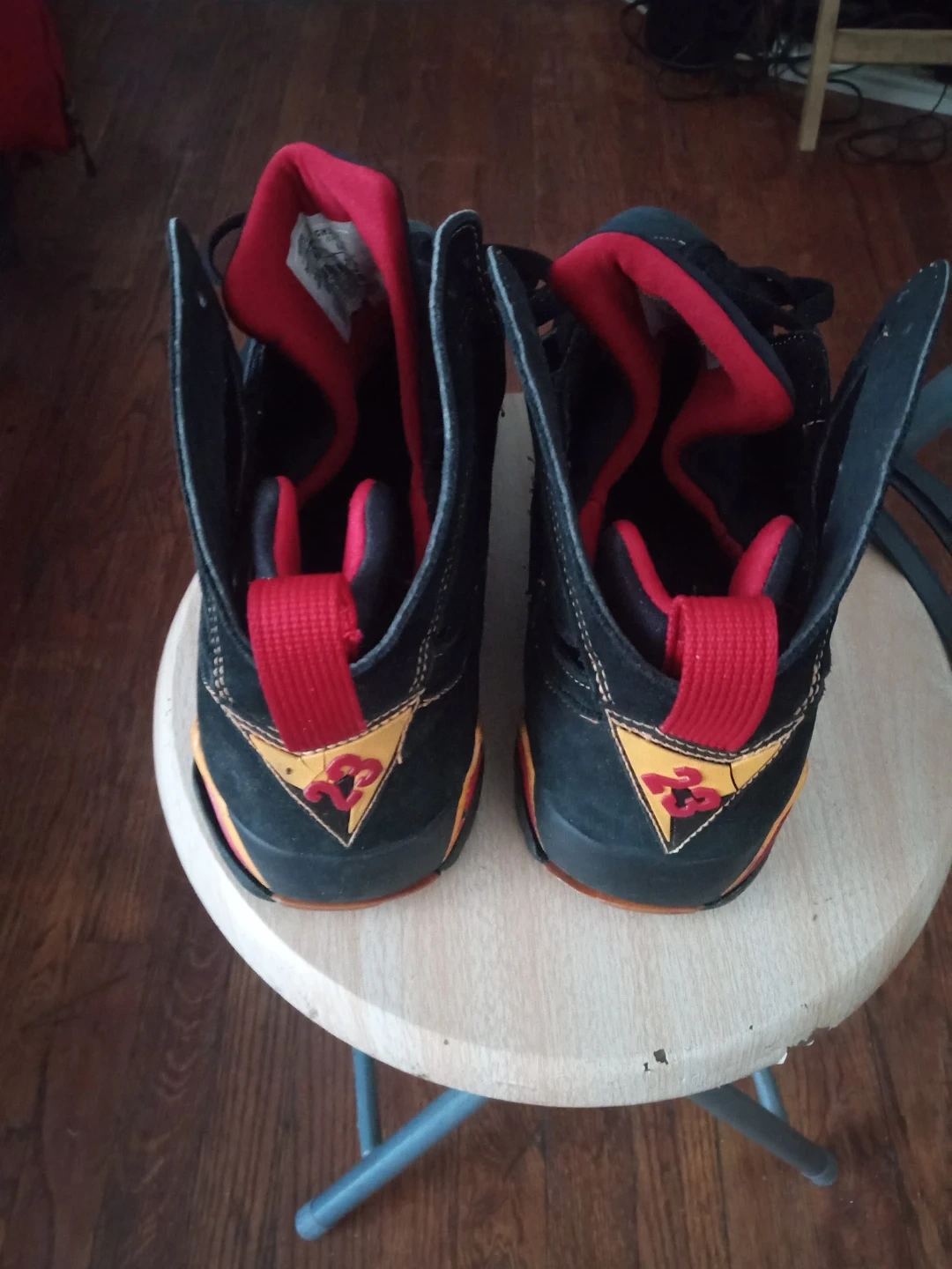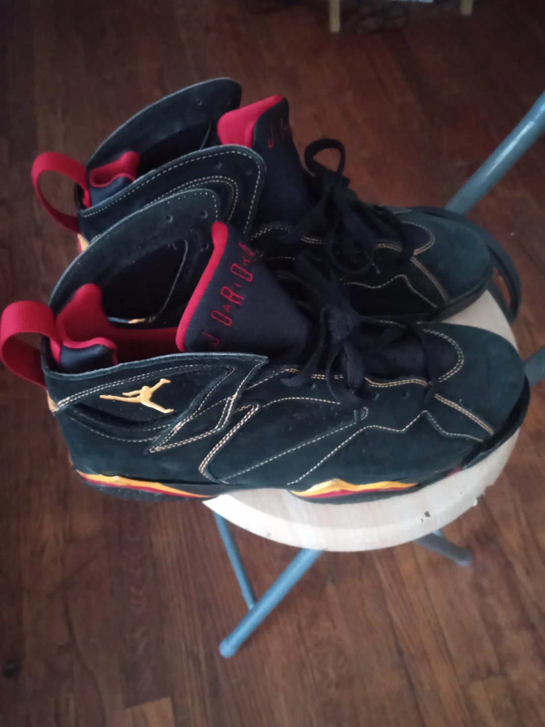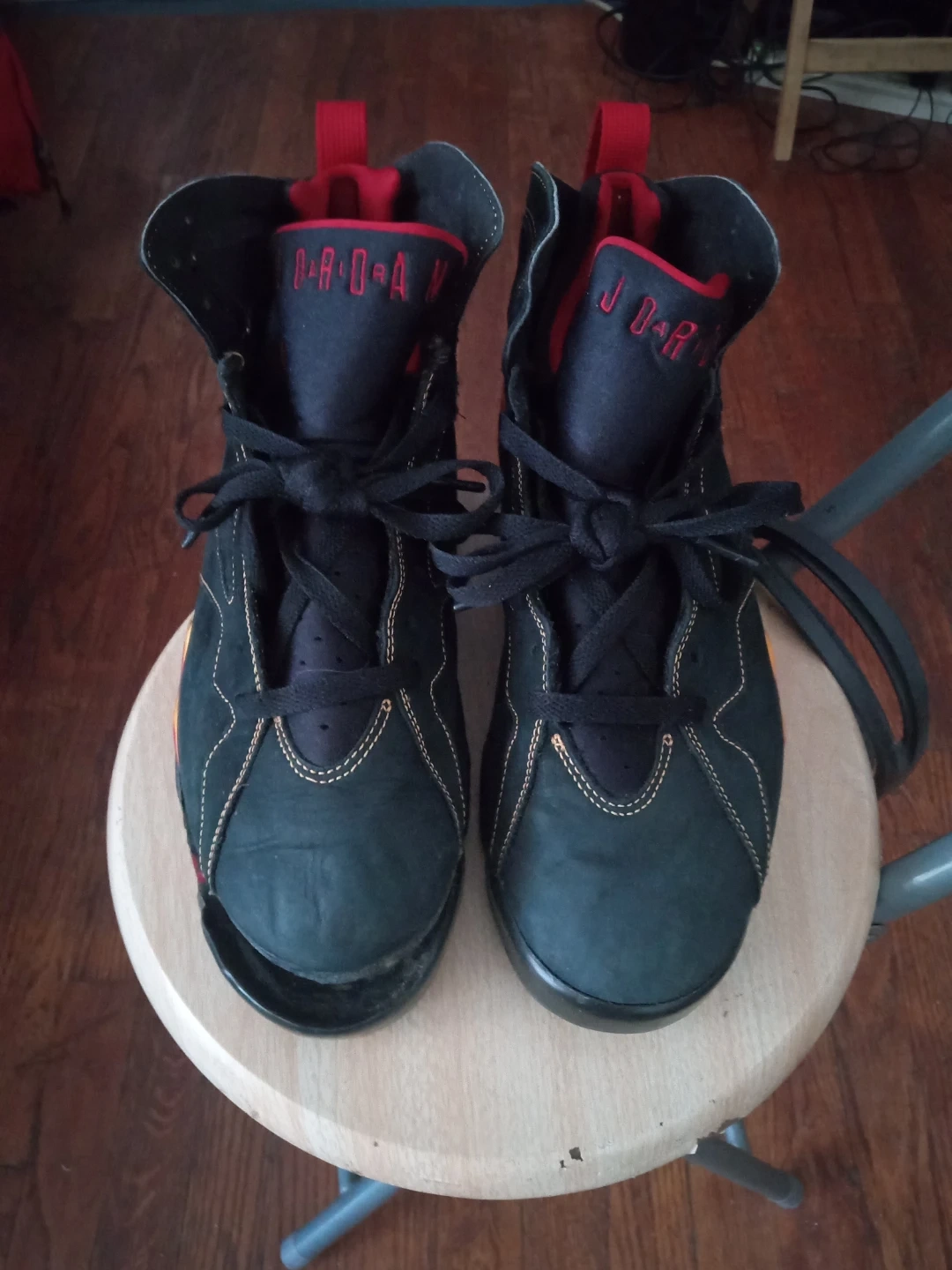 Selling a pair of Collectible Air Jordan 7 citrus Retro sneakers in black and red. They're in good condition with some signs of wear, as shown in the pictures. These are a classic and stylish addition to any sneaker collection!