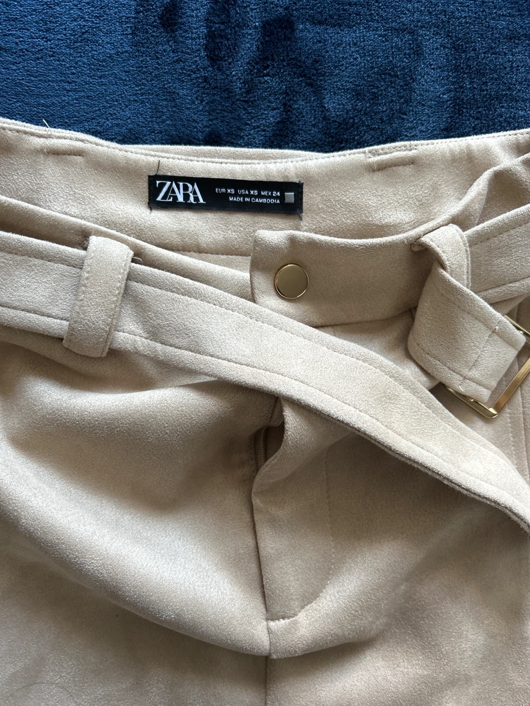 Selling a cute Zara mini skirt in a beige colour. It's a size XS and features a stylish belt detail. Perfect for adding a chic touch to your wardrobe in this time of year. It’s for winter and fall