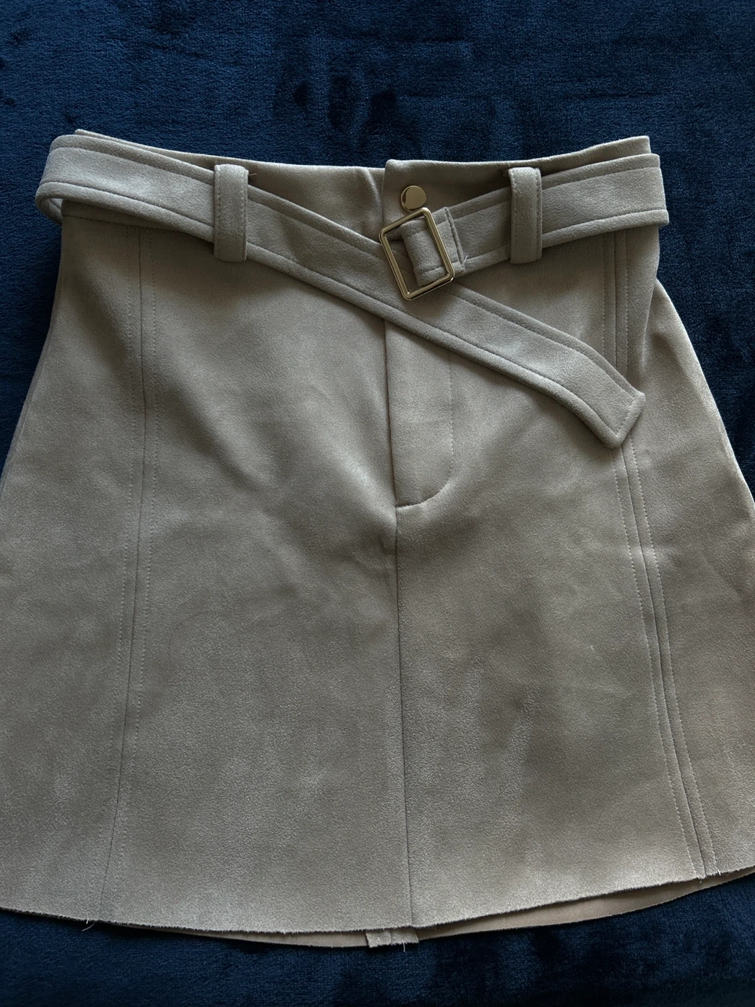 Selling a cute Zara mini skirt in a beige colour. It's a size XS and features a stylish belt detail. Perfect for adding a chic touch to your wardrobe in this time of year. It’s for winter and fall