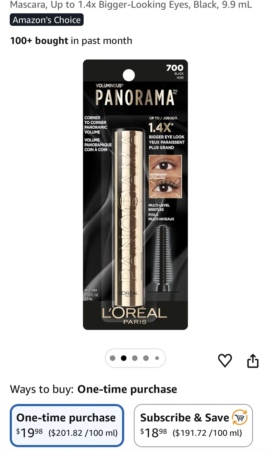 Selling a L'Oreal Voluminous Panorama Mascara in black! This mascara is designed to give your lashes corner-to-corner panoramic volume. It's formulated to create up to 1.4x bigger-looking eyes. Retails for $19.98