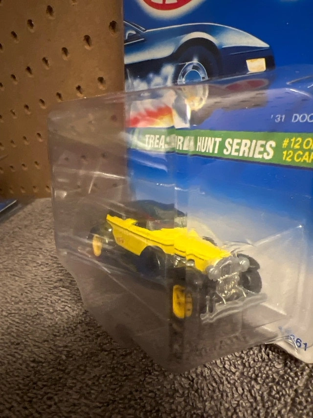 Relive the thrill of the chase with this 1995 Hot Wheels Treasure Hunt Series '31 Doozie, a rare and highly sought-after collectible die-cast car, number 12 of 12 in the Treasure Hunt series, still sealed in its original packaging. This Hot Wheels '31 Doozie is a must-have for collectors and enthusiasts alike. Don't miss your chance to own a piece of Hot Wheels history! If the ad is up, the '31 Doozie is still waiting for a new home.