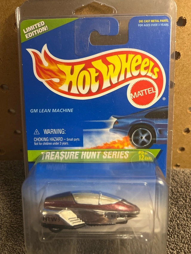 Up for grabs is a 1997 Hot Wheels Treasure Hunt Series GM Lean Machine, still sealed in its original packaging! This collectable die-cast car is a real gem for Hot Wheels enthusiasts, featuring a unique design and the sought-after Treasure Hunt designation. This is a used item. Here are some of its key features: * Model: GM Lean Machine * Series: Treasure Hunt * Year: 1997 * Condition: New in package Imagine this rare find displayed proudly in your collection, sparking conversations and envy among fellow collectors. If you're seeing this ad, then yes, it's still available, so don't miss out!