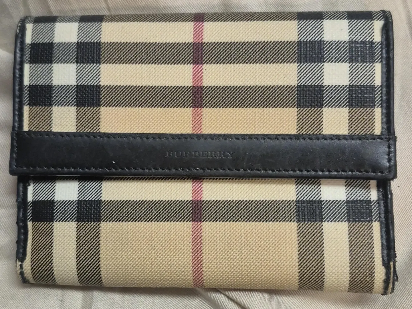 Selling a classic Burberry wallet. The iconic plaid pattern and leather accents give it a timeless look. It's in great condition and ready for a new owner