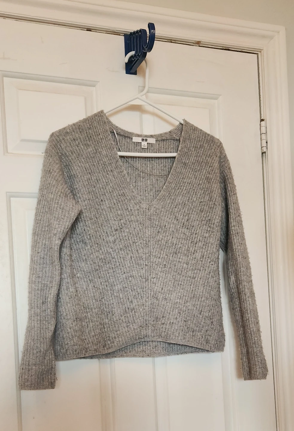 Cozy up in this lovely grey sweater from Uniqlo! It's a size small and made with a wool blend, perfect for staying warm on chilly days. It's in great condition and ready for a new home.