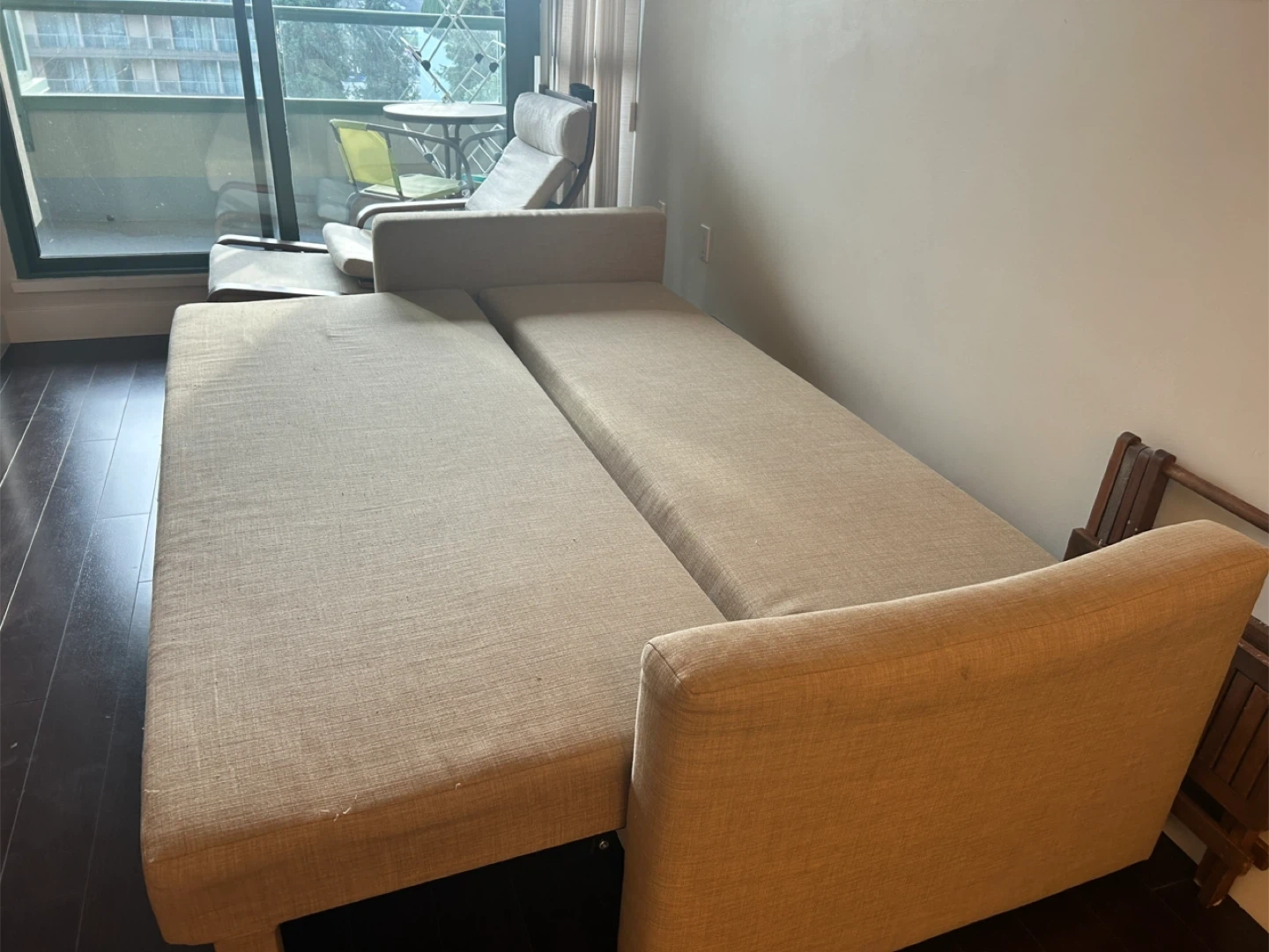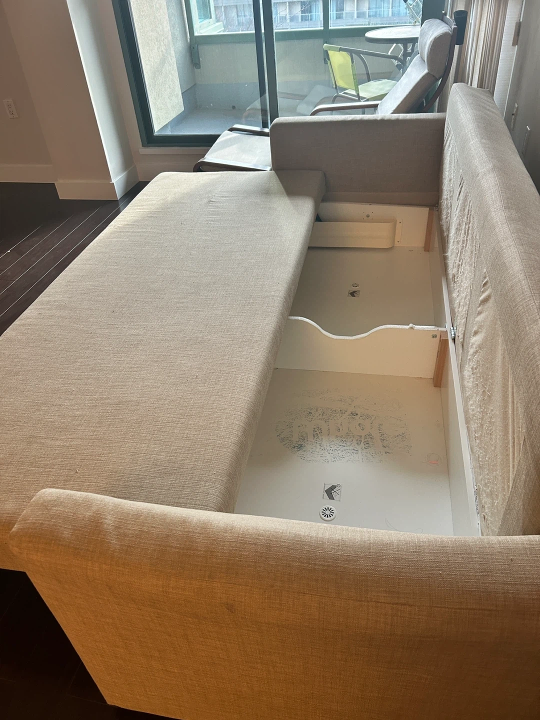 Selling an IKEA Friheten sleeper sofa in beige. It's in great shape and ready for a new home. Perfect for small spaces or guest rooms!