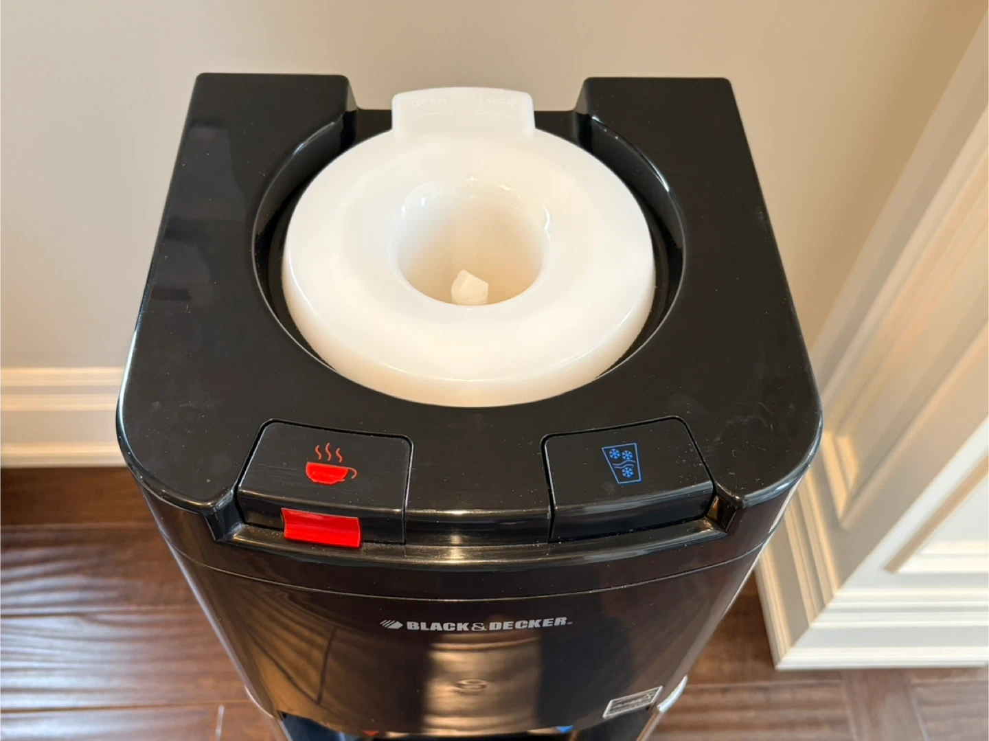 Black & Decker water dispenser. It offers both hot and cold water options, perfect for any time of year! It's Energy Star certified. Black and stainless steel. Has removable drip tray. Can be used at home, office, at the business or just in the garage. It has a switch on the back to switch off heating of the water when not in use. Quiet and low energy. User Manual available.