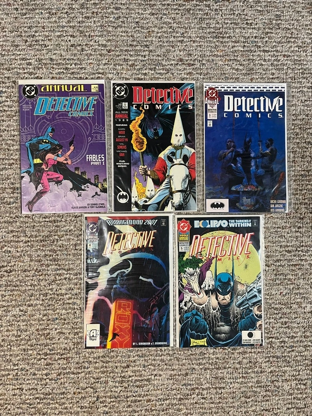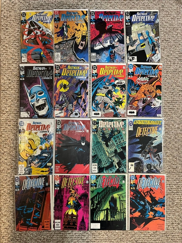 For sale is a huge lot of Detective Comics Starring Batman. There are 69 comics in this lot. Most are high grade. Lots of good stuff here. Issue numbers are: 0, 582, 598, 601-603, 605-607, 609-638, 640-646, 650, 651, 656, 660-668, 872, 680, 702, 766, 830. Annual 1-5. Cash only. Pickup is in Etobicoke, near Queensway and Islington.
