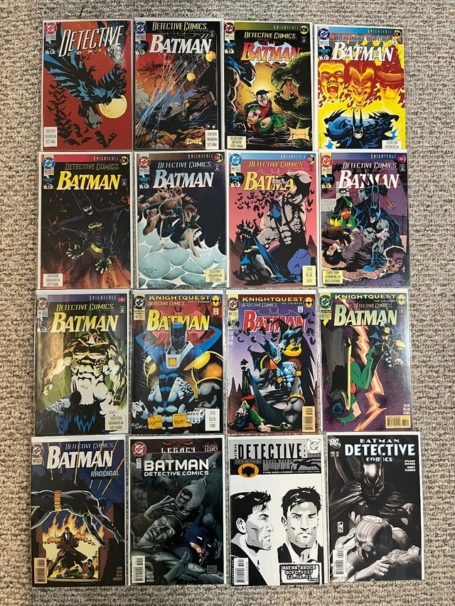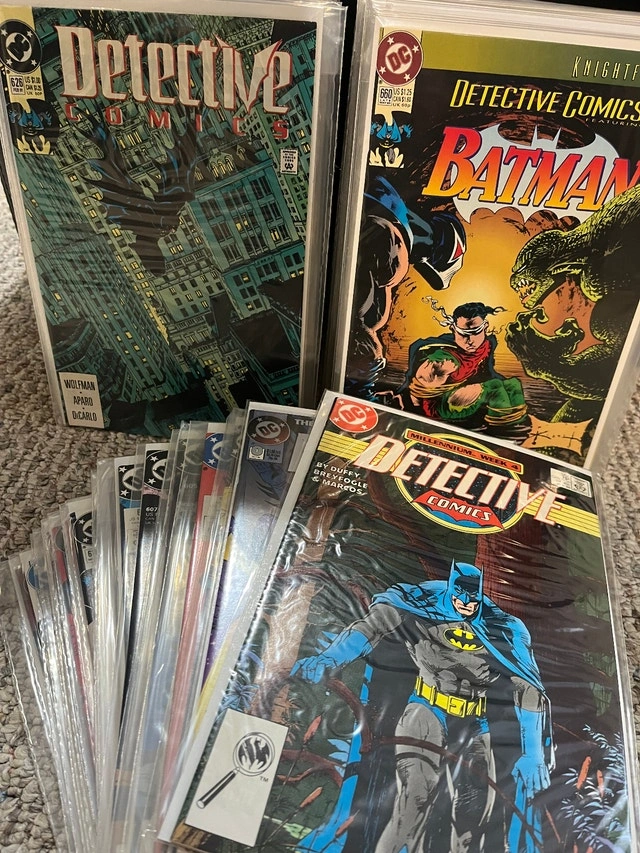For sale is a huge lot of Detective Comics Starring Batman. There are 69 comics in this lot. Most are high grade. Lots of good stuff here. Issue numbers are: 0, 582, 598, 601-603, 605-607, 609-638, 640-646, 650, 651, 656, 660-668, 872, 680, 702, 766, 830. Annual 1-5. Cash only. Pickup is in Etobicoke, near Queensway and Islington.