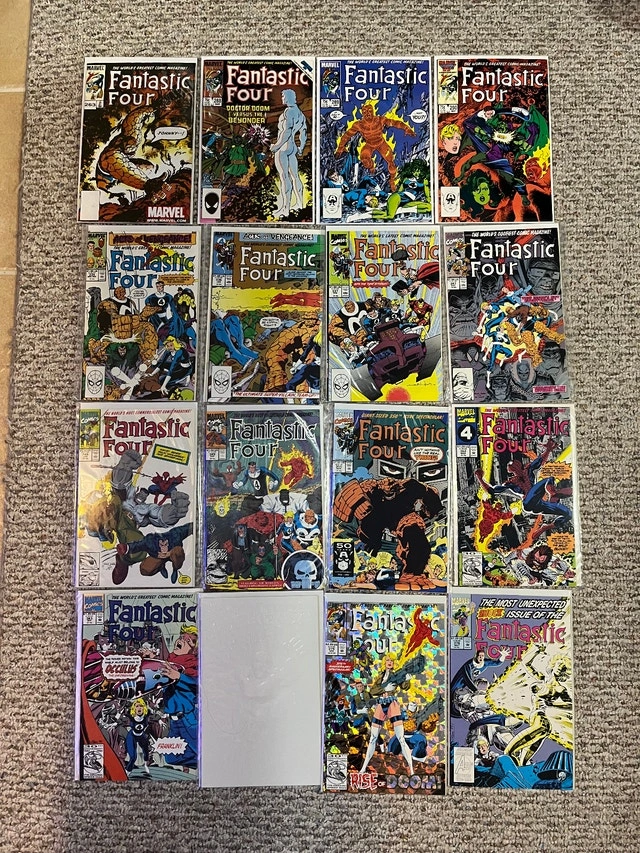 For sale is a lot of Fantastic Four Comic Books. There are 31 comics in this lot. Most are high grade. Lots of good stuff here. Issue numbers are: Vol 1 263, 288-290, 335-337, 347-350, 362, 363, 371, 375, 376, 395, 400, 489. Annual 22, 24 FF Annual 1998 Fantastic Four 1 (1996) Fantastic Four Unlimited 1-3, 8 Fantastic Four Remix 1 Fantastic Four 2099 1 Fantastic Four Official Marvel Index 5, 8