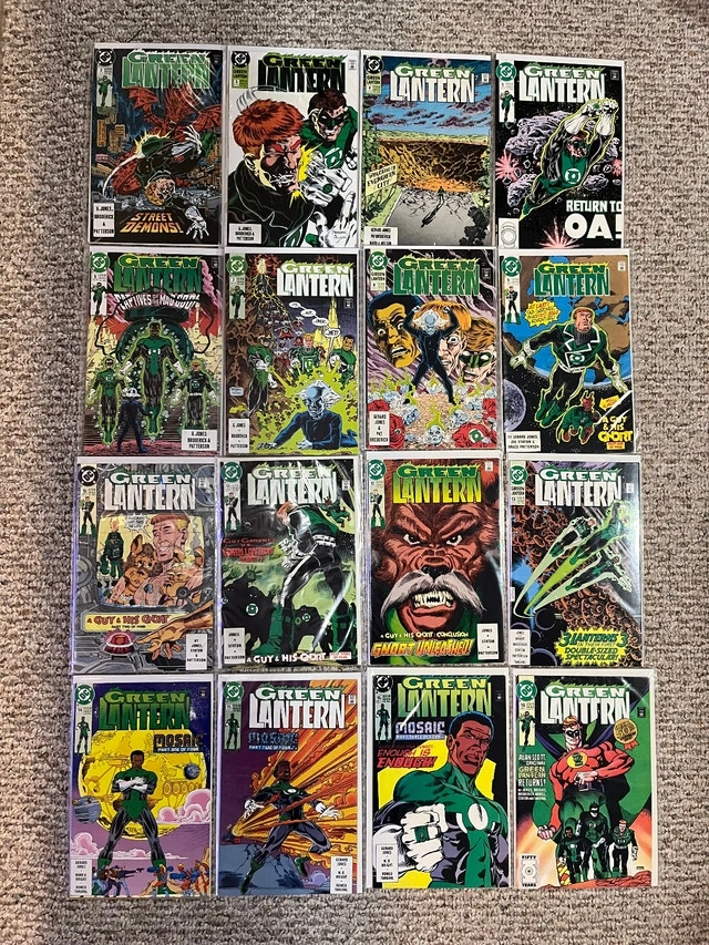 For sale is a huge lot of Green Lantern Comic Books. There are 51 comics in this lot. Most are high grade. Lots of good stuff here. Issue numbers are: Green Lantern (1990) 2-16, 19-26, 28, 46, 63, 64 Annual 1 Green Lantern Corps Quarterly 1 Sinestro Corps Special 1 Green Lantern (2004) 1 Green Lantern (2005) 21, 22 Green Lantern Corps (2007) 14, 15 Green Lantern Mosaic 1-4 Green Lantern Emerald Dawn 1-6 Green Lantern Emerald Dawn II 1-6 Cash only. Pickup is in Etobicoke, near Queensway and Islington.