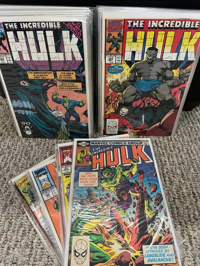 For sale is a great lot of 25 Incredible Hulk Comic Books. Issues are: 263, 364-369, 374, 375, 378-384, 388, 389, 393, 395-398, 400 Annual 16. Cash only. Pickup is in Etobicoke, near Queensway and Islington