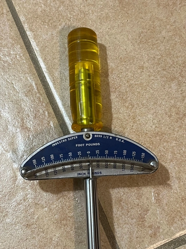 For sale is an Indestro Super Torque Indicator Wrench 1/2" Drive No. 8099 Made in USA. I have a lot more tools, especially for machinists. Please click on my name in the ad to see the other listings. Cash only. Pickup is in Etobicoke, near Queensway and Islington.